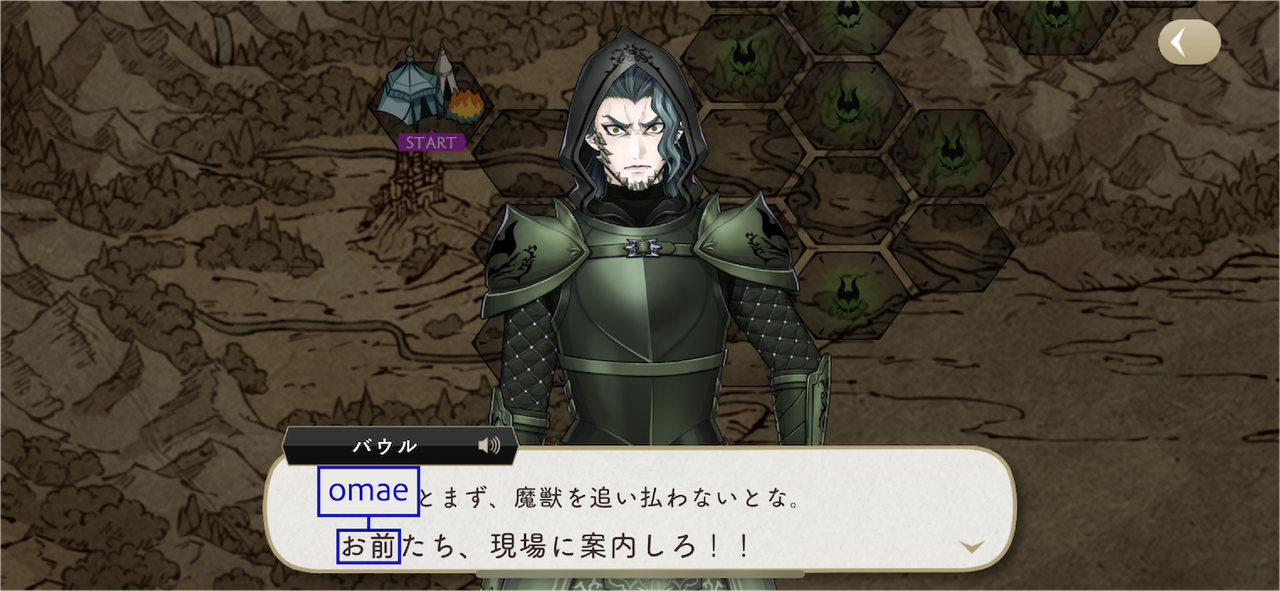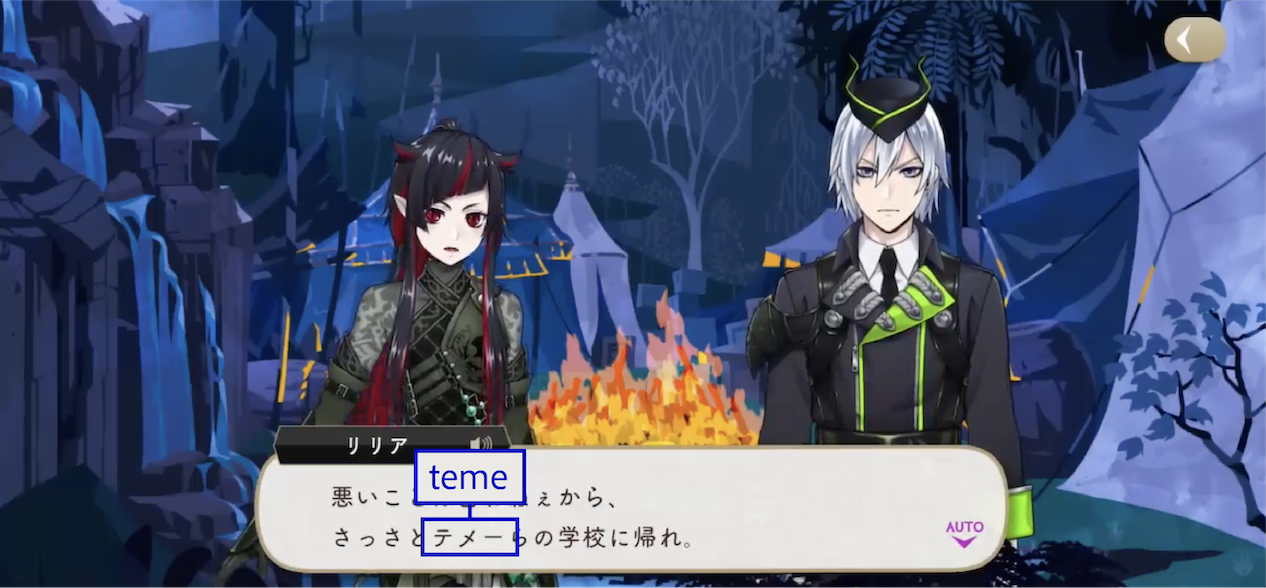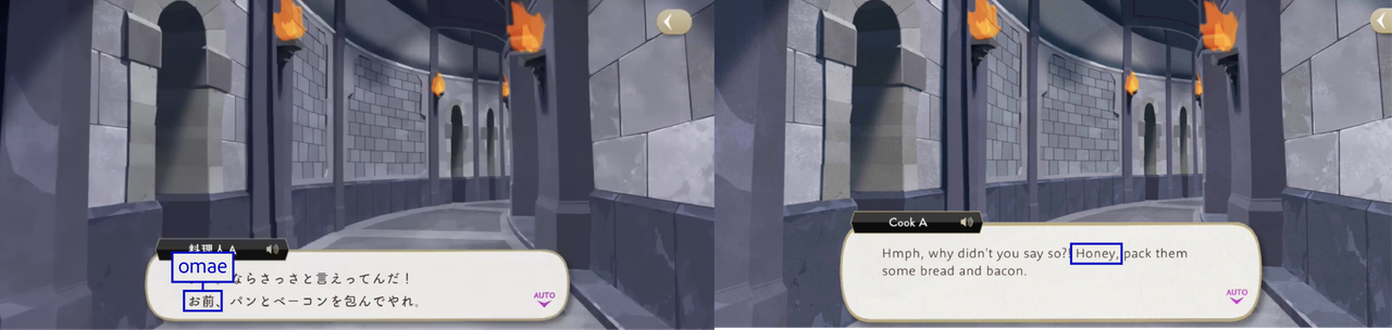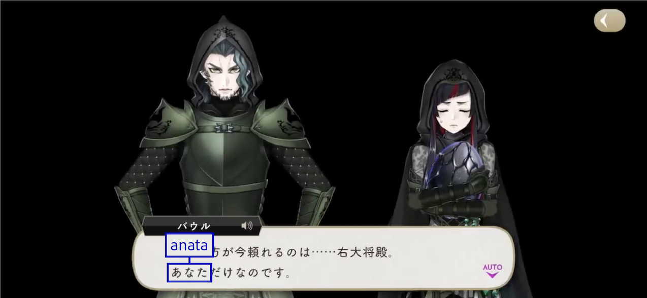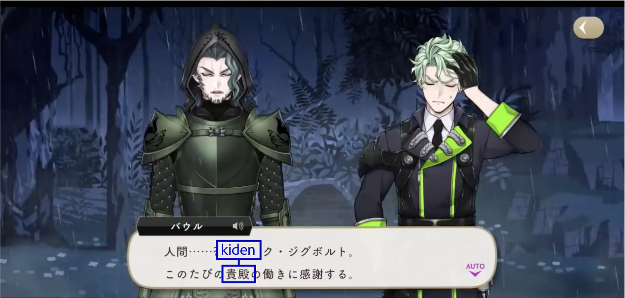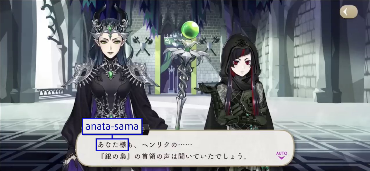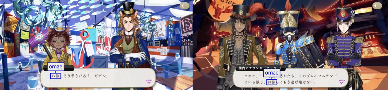 The Dawn Knight uses お前 (omae) upon discovering Lilia’s group during their escape.