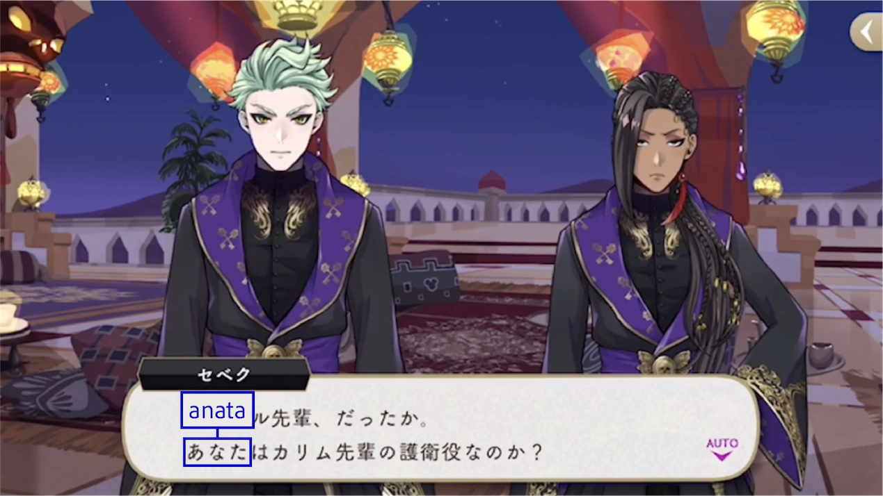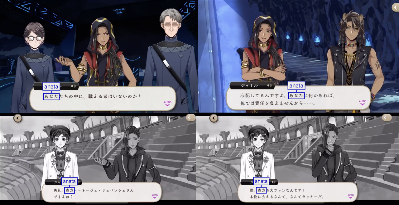 あなた (anata) is one of the various forms of “you” used by Jamil. He also uses it in kanji form (貴方) with Neige.