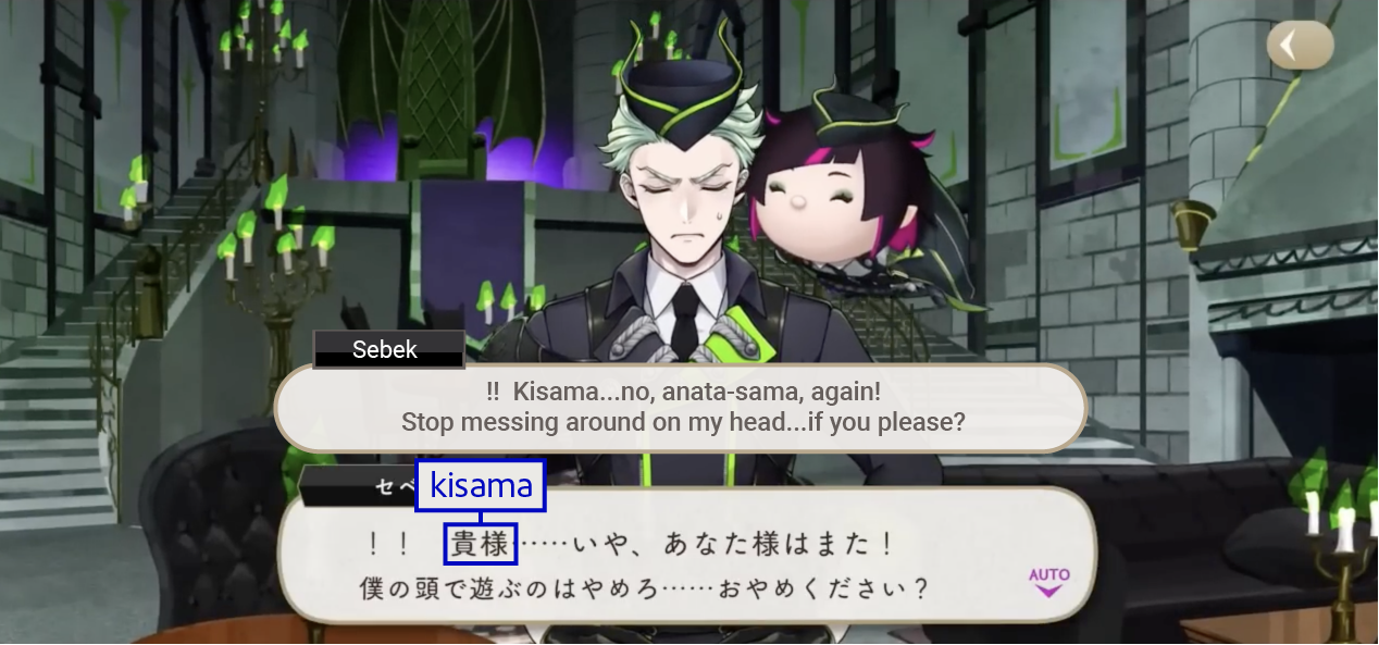 お前 (omae) is also one of Sebek’s preferred versions of “you.”