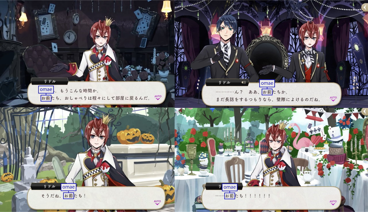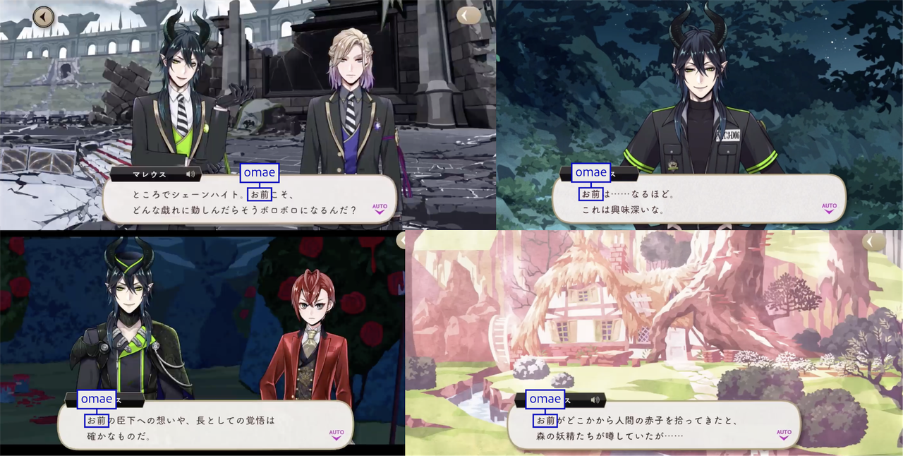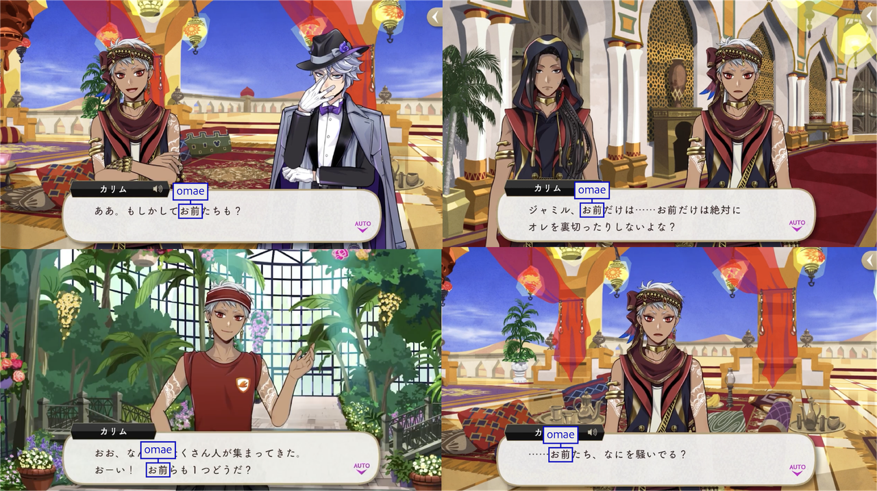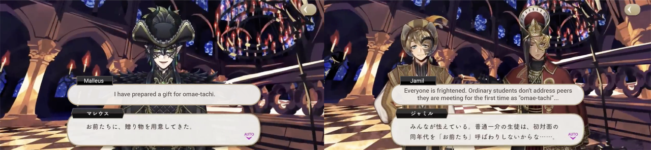 Malleus using お前 (omae) in an inappropriate situation is called out within the game itself: Jamil comments on how Malleus likely shocked the attendees of the Noble Bell College social by addressing them as the plural form of “omae.”