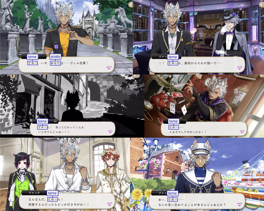 Jack also uses あなた (anata) with Vil, though he starts out with a very rude form of “you” (てめー (teme)) and self corrects once he realizes that it’s Vil to whom he is speaking.