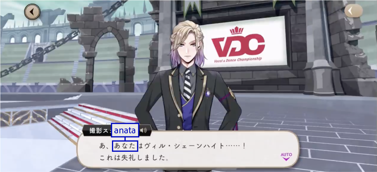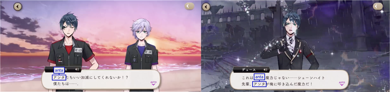 Deuce uses あなた (anata) with Vil in a vignette.