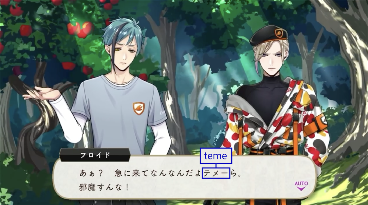 Background characters will also use テメェ / てめぇ(teme).