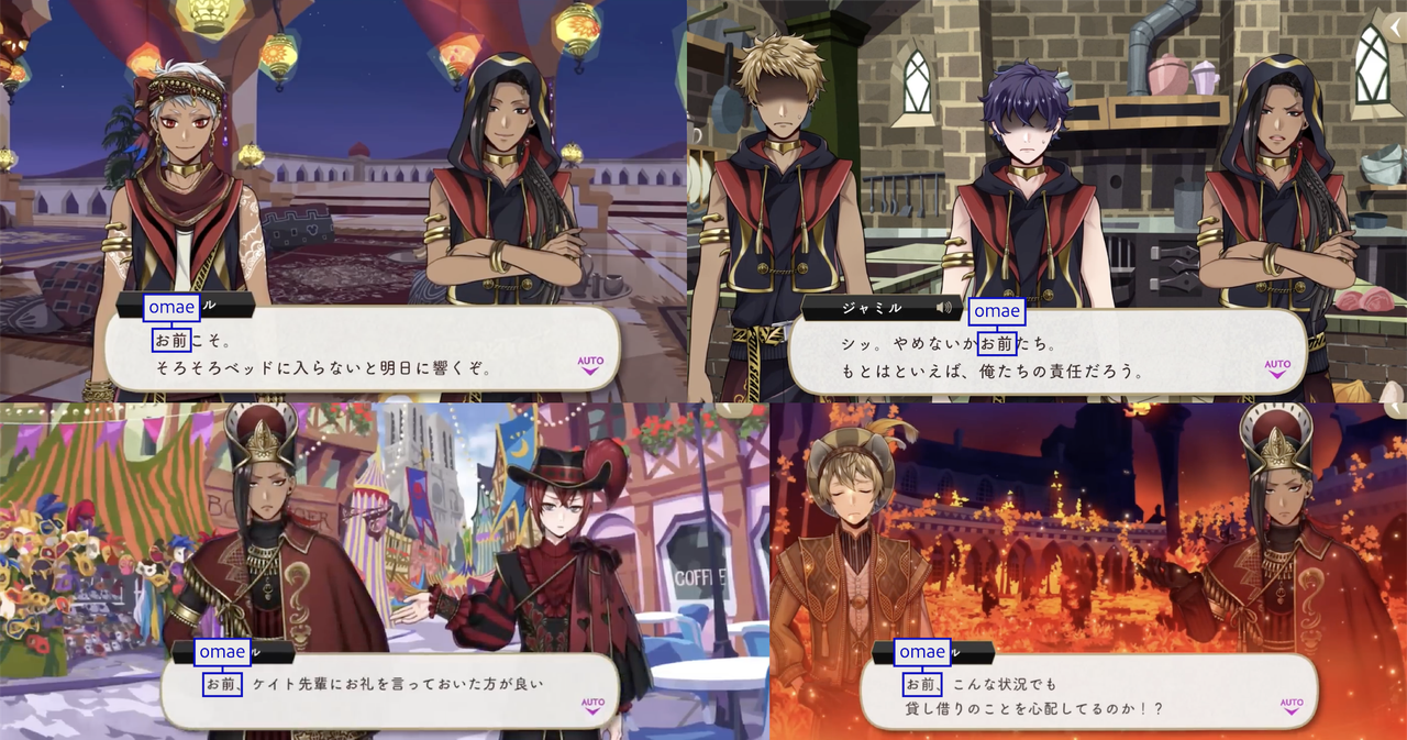 お前 (omae) is one of the five forms of “you” that Jamil uses.