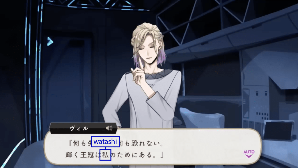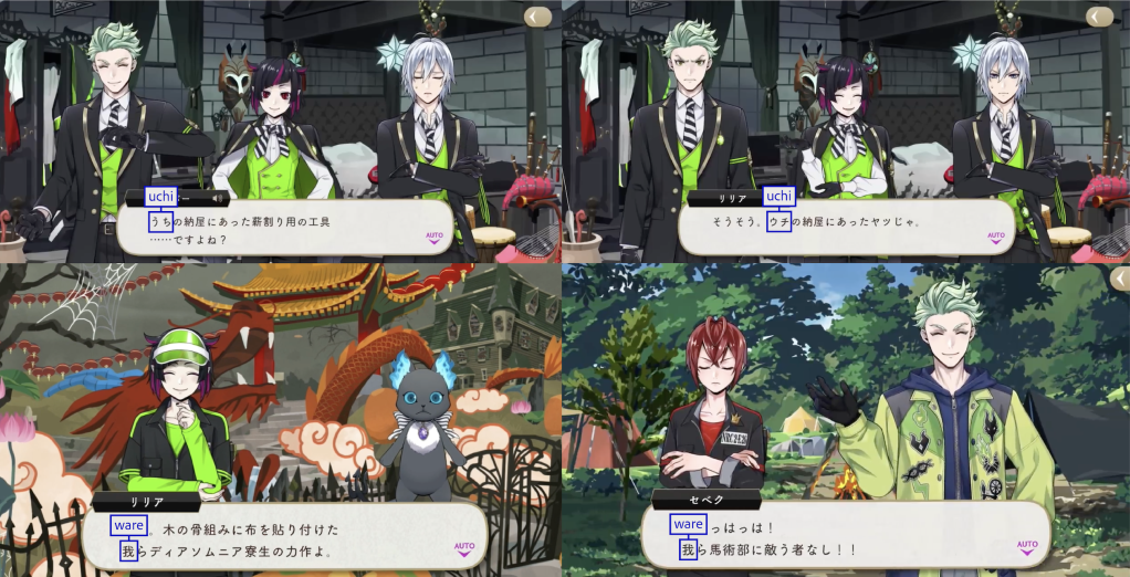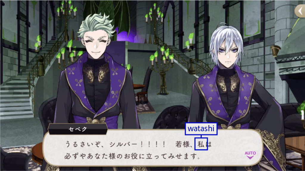 A: This might tie in to plurals! Pronouns can change sometimes when someone is speaking on behalf of a group, with Silver changing to “Uchi” when talking about himself and Lilia, Sebek changing to “Ware” when talking about the Equestrian Club, etc., and this list is only for singular pronouns only!