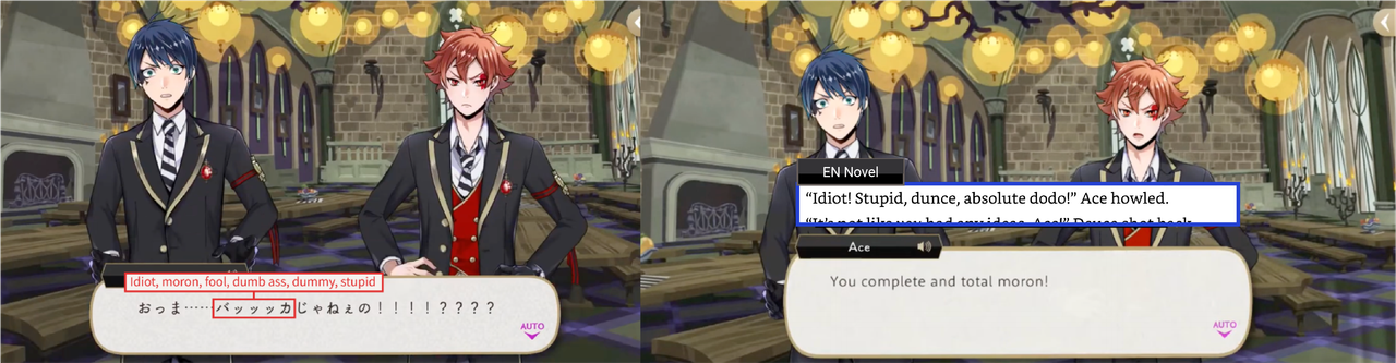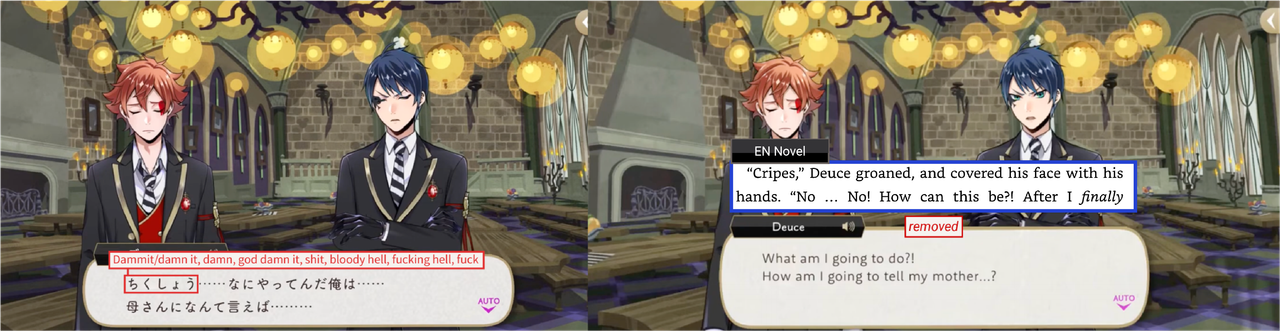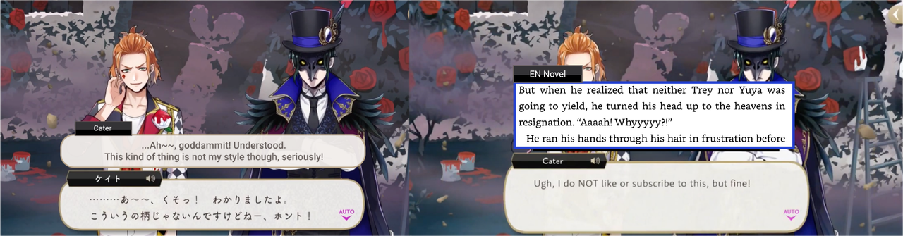 A word-for-word comparison of the official English-language translation of Twst the first novel.
