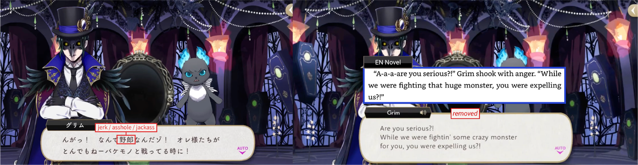 Original Novel (Grim): “Nyahaha, what’s with that stupid look on your face? You already forgotten what I look like?”