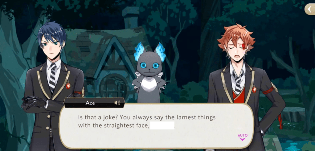 When Ace confronts Trey, Trey is incorrectly localized as “Cater.” Cater is not in this scene.