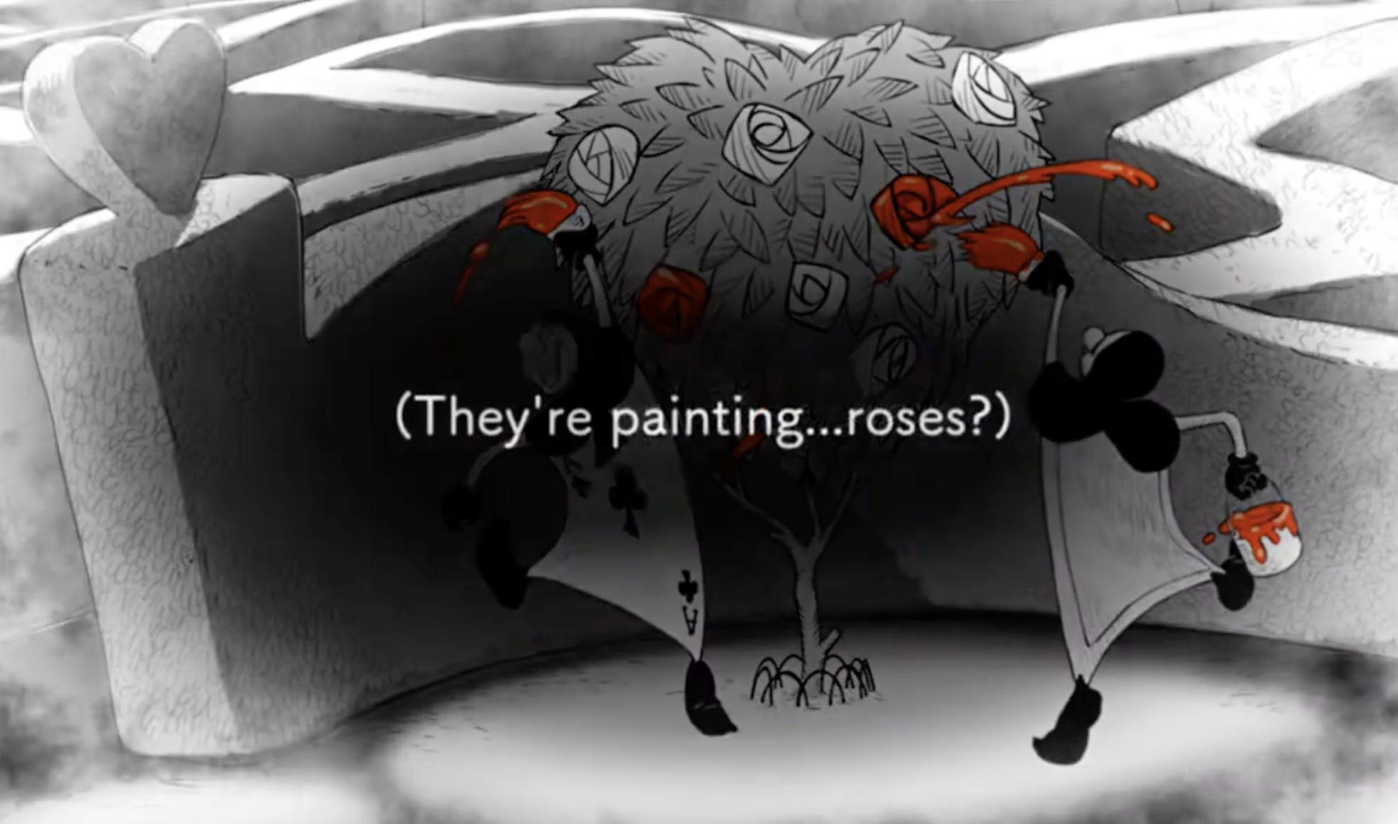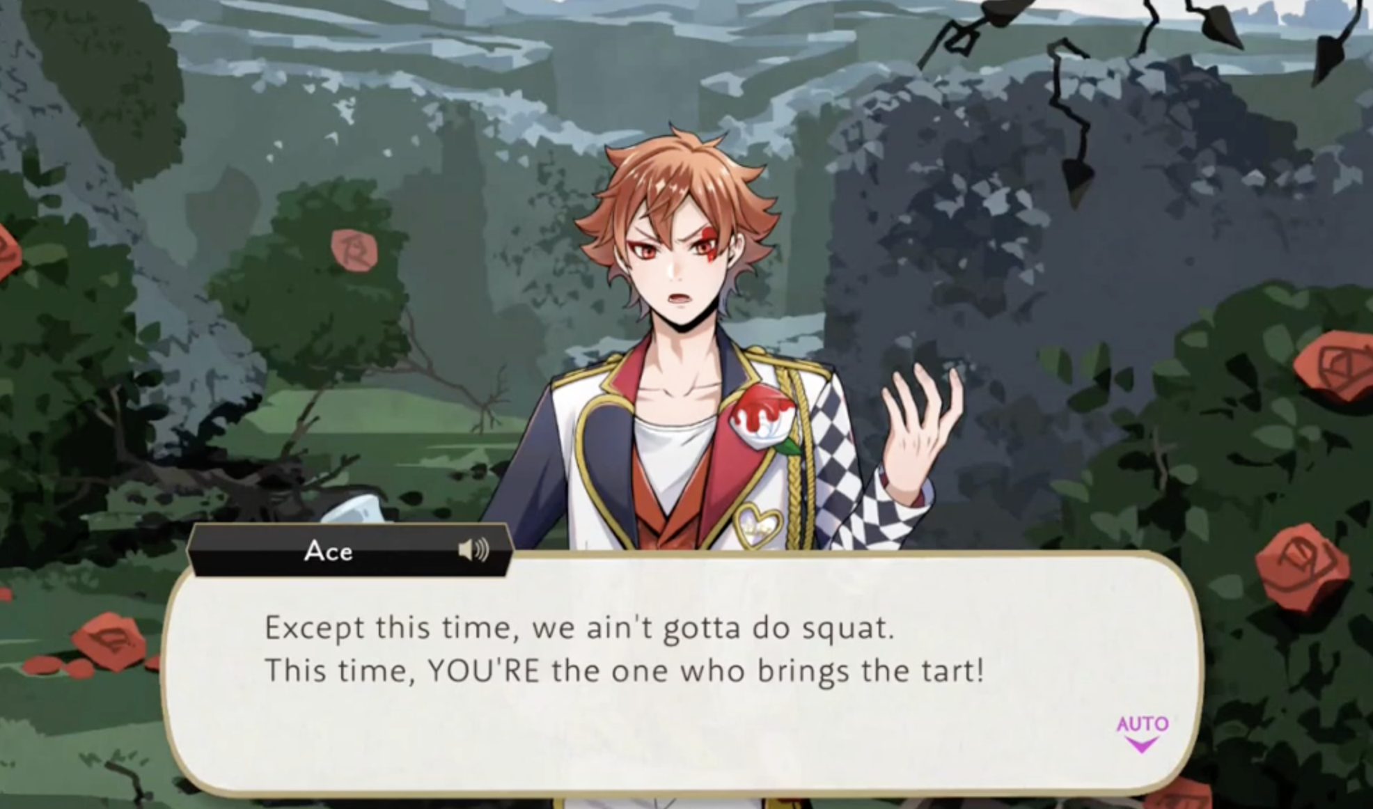 He goes to apologize and meets Cater, who has the group paint roses for him before kicking them out for not having an apology tart, in accordance with the rules.