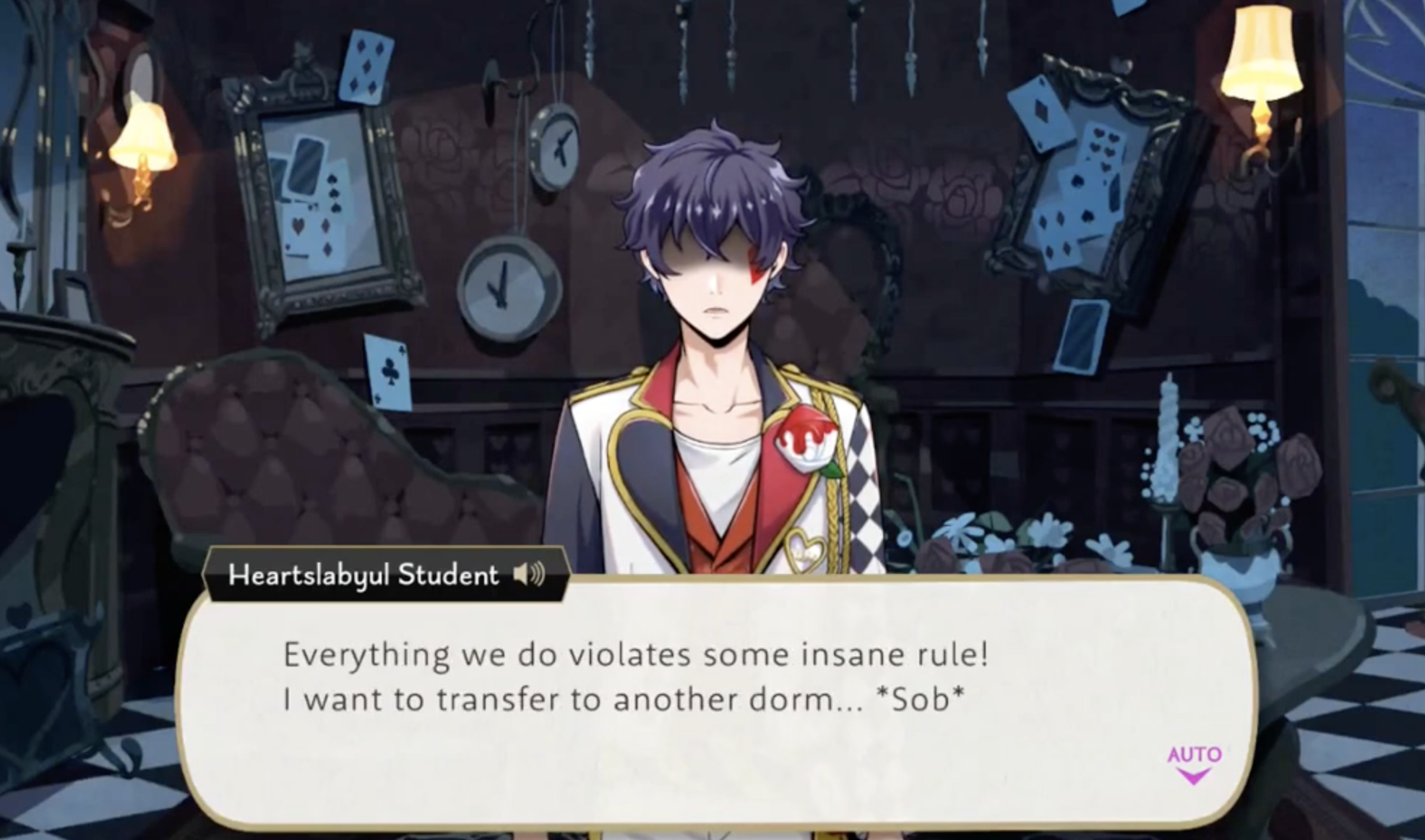 Ace visits the prefect in their dorm that night. He has had his magic temporarily removed by his Housewarden, Riddle, as punishment for eating a tart, breaking a rule of his dorm.