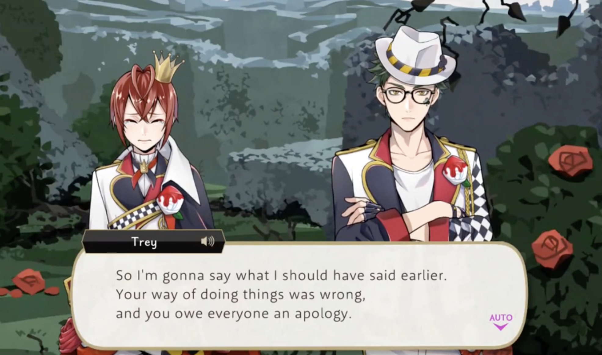 Trey tells Riddle to give everyone an apology but Ace refuses to accept it unless Riddle makes a tart on his own for a new party.