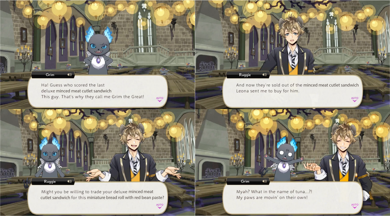 Grim acquires a sold-out sandwich that Savanaclaw student Ruggie forces him to trade for something else against his will.