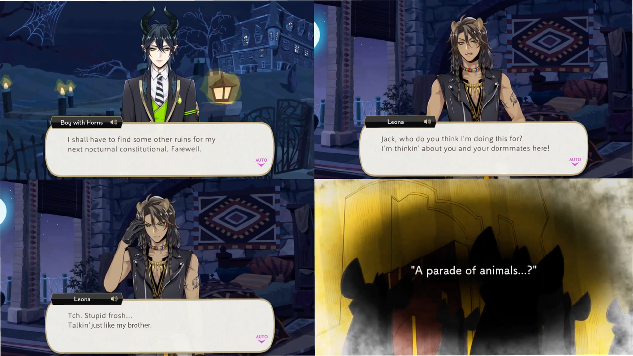 Jack teams up with Heartslabyul. Leona works with Octavinelle Dorm to secure a potion for Ruggie and Savanaclaw students praise Leona, but he says succession is not connected to ability and conquering the school will not fix the real world.