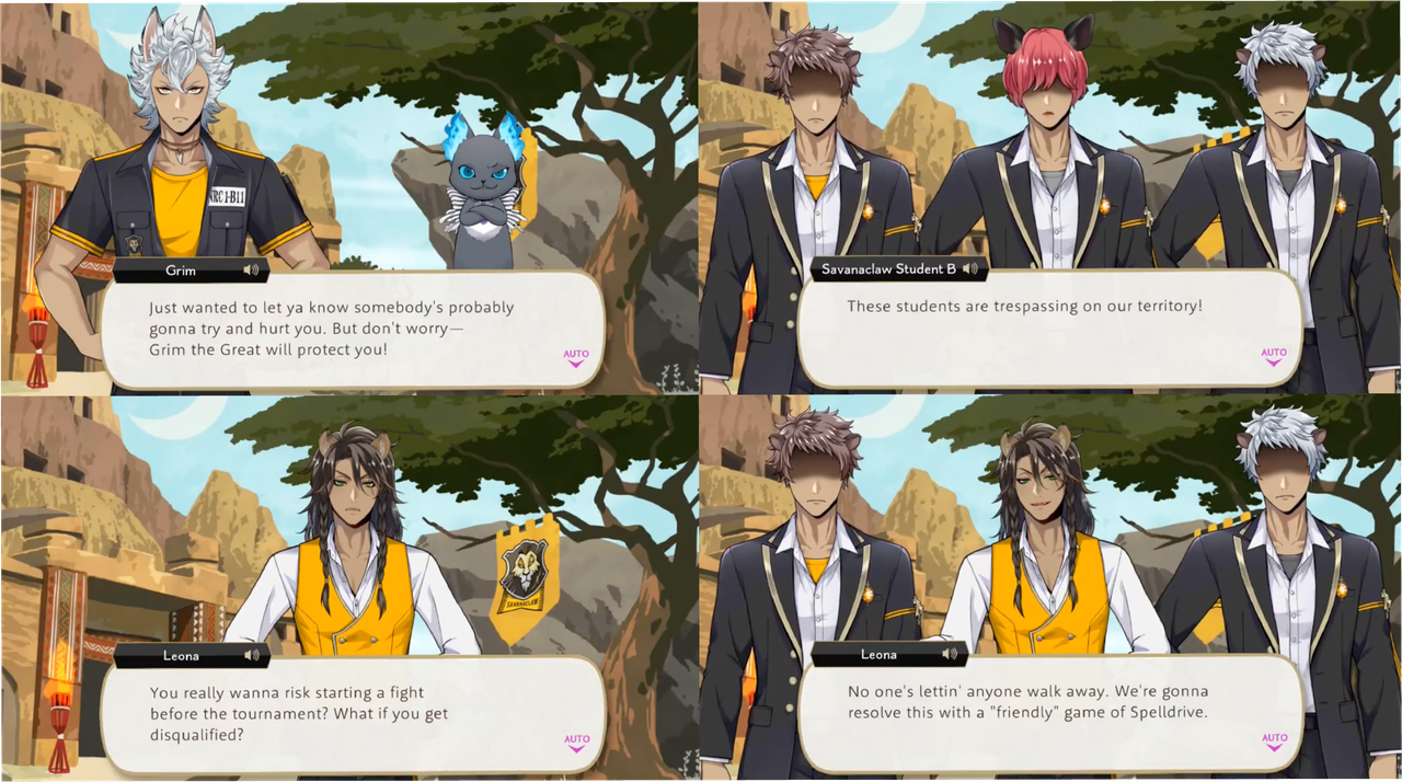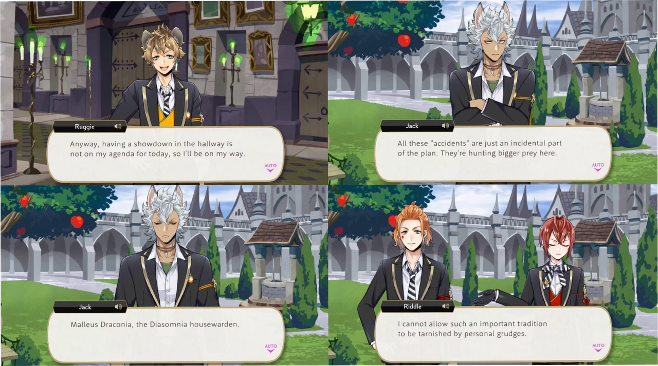 Crowley suggests retiring the housewarden of Diasomnia from an upcoming spelldrive tournament, but Savanaclaw Housewarden Leona is against it, joined by Pomefiore’s Housewarden Vil, who says he suspects Crowley of some kind of unconscious bias.