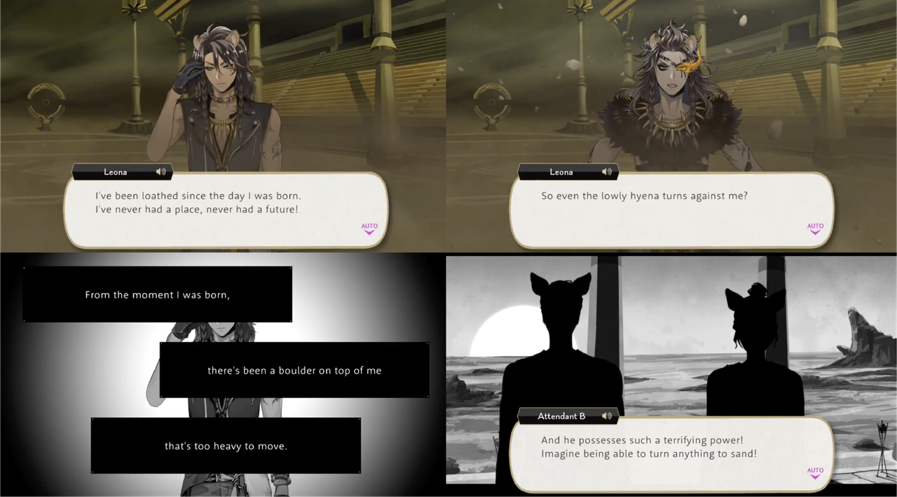 Leona gives up as they have no chance against Malleus, saying that he was humoring Ruggie and the other students when they talked about their dreams, calling Ruggie a hyena who grew up in a dump and himself a hated prince.