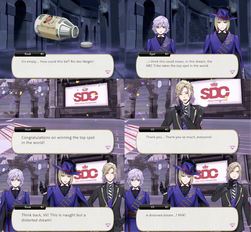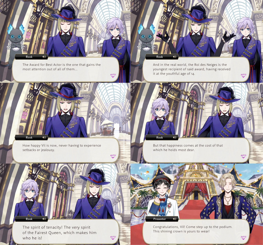The group takes Rook with them to Vil’s dream where Vil is a beloved celebrity and Neige is his assistant, and Vil is about to receive a prestigious best-actor award that Neige won in the real world at 14 years old.