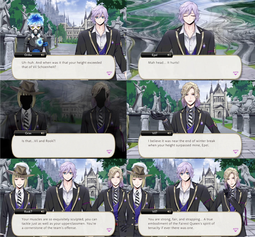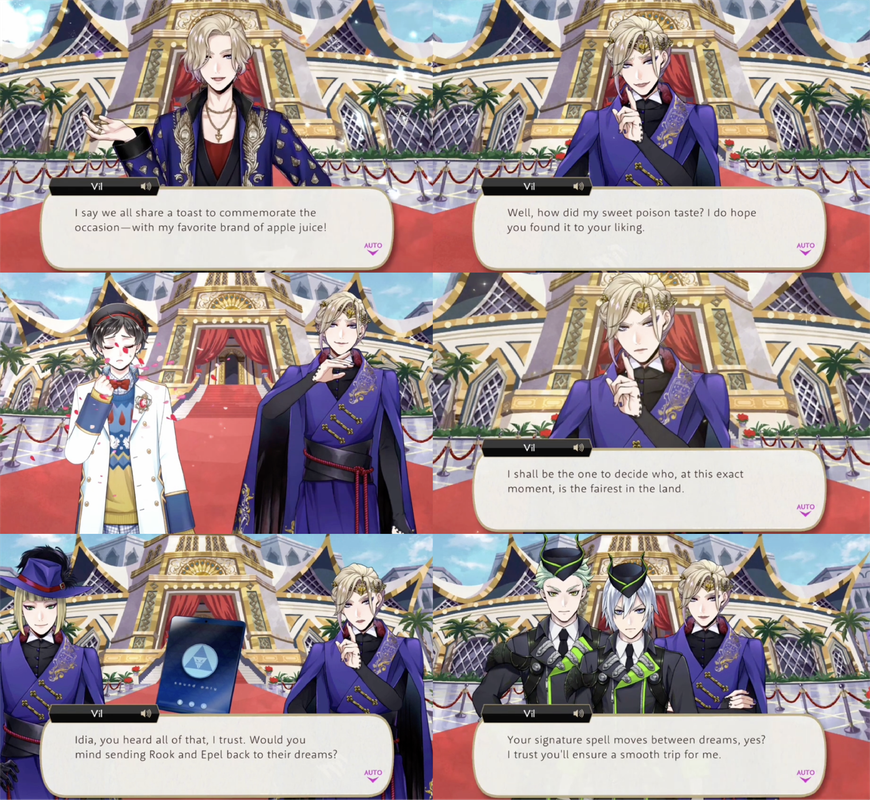 They arrive in Rook’s dream with Epel, where Rook is a third-year Savanaclaw student instead of vice-Housewarden of Pomefiore and Vil is not Housewarden of Pomefiore but is instead attending Royal Sword academy with Neige, who is his best friend instead of his rival.