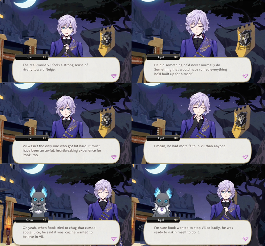 Epel explains what Vil did in Book 5 in response to losing to Neige, which must have been a heartbreaking experience for Rook, to the point that he had been willing to drink the poison that Vil made for Neige because he had been so devastated.