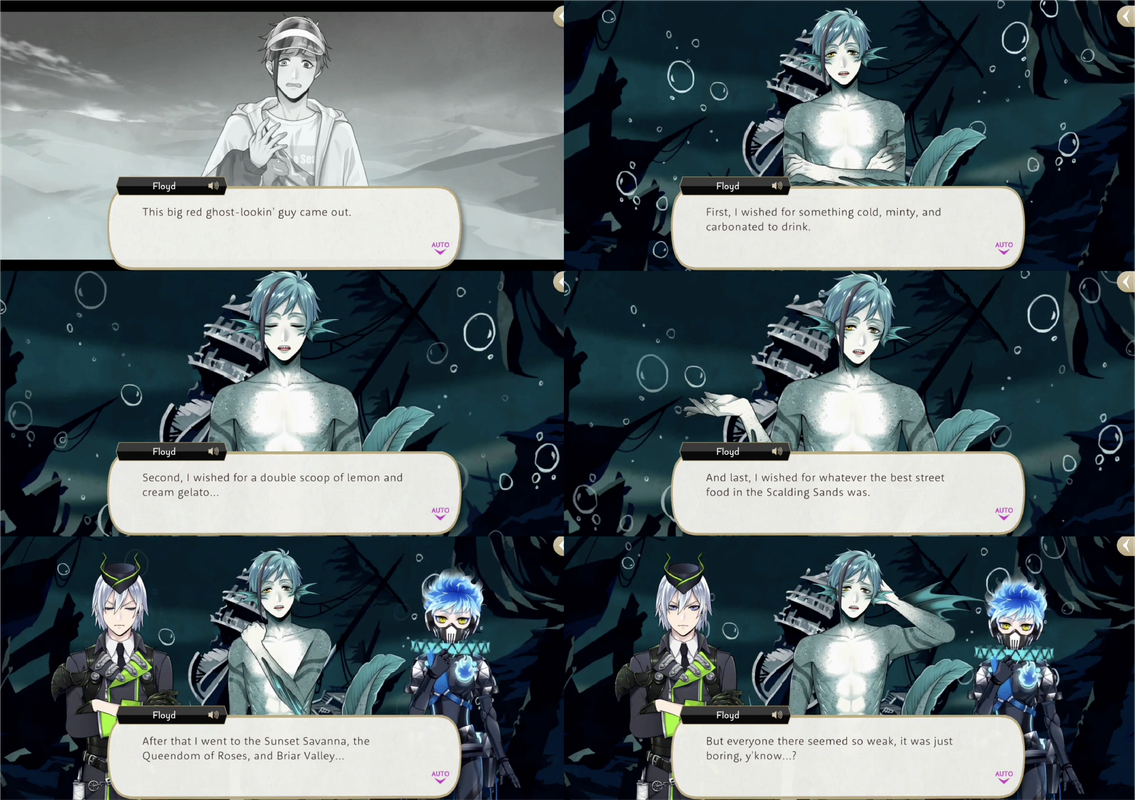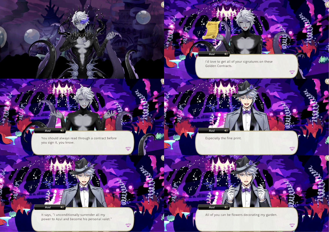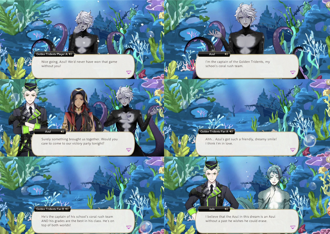 Azul returns to the dream where he is an accomplished athlete and distributes Golden Contracts for the mermaids of darkness to sign, with the fine print of, “I unconditionally surrender all my power to Azul and become his personal valet.”