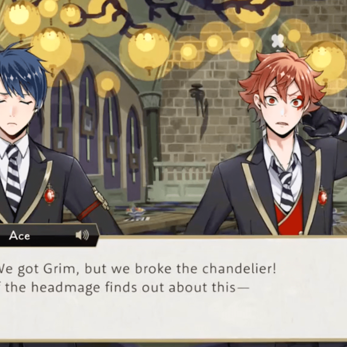 Ace runs away and is caught by Deuce. Grim then also runs away. Deuce throws Ace in order to capture Grim.