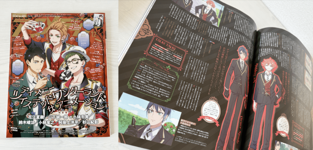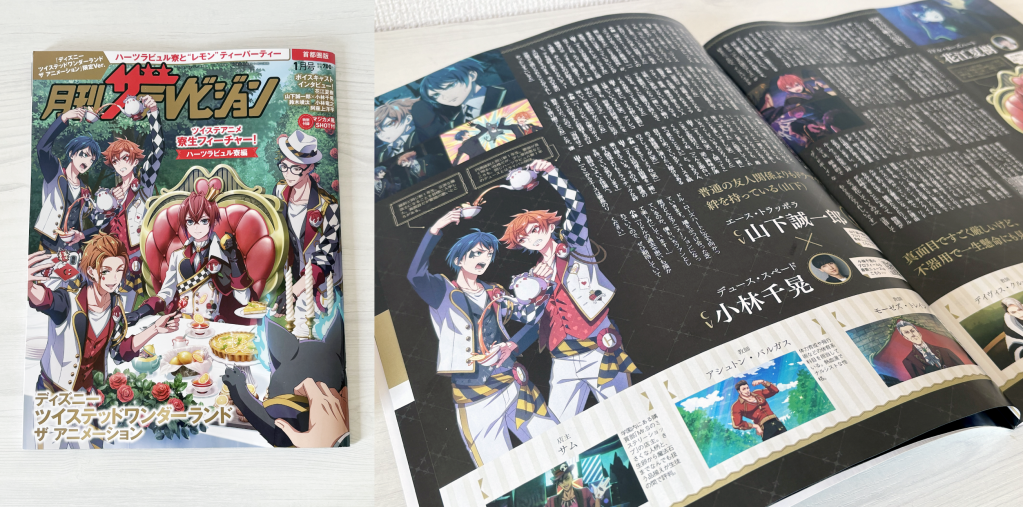 Twst Content: 10 pages + poster (plus additional posters and clear file for non-Twst series) Details: Includes interviews with voice actors for Riddle, Trey, Cater, Yuuken, Grim and anime production staff (partially translated here ▶︎ and here ▶︎ and here ▶︎)