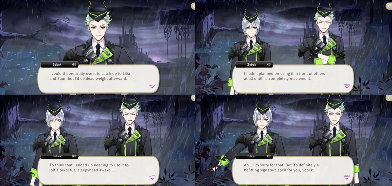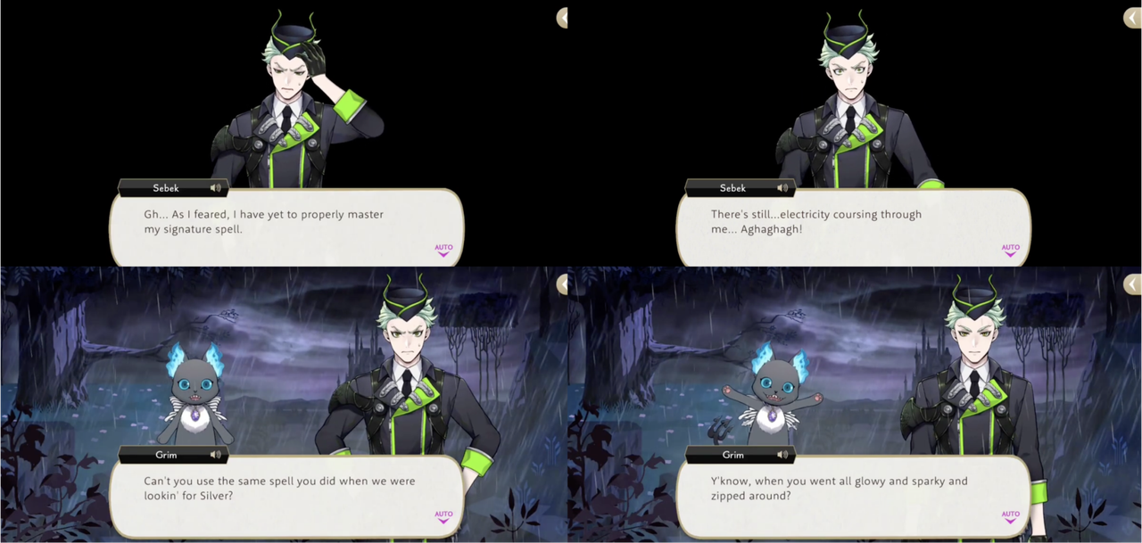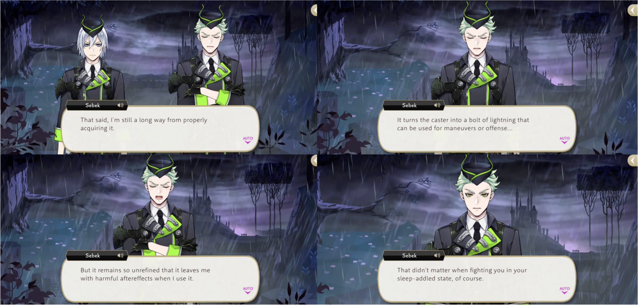 Sebek explains, “It turns the caster into a bolt of lightning that can be used for maneuvers or offense…But it remains so unrefined that it leaves me with harmful aftereffects when I use it.”
