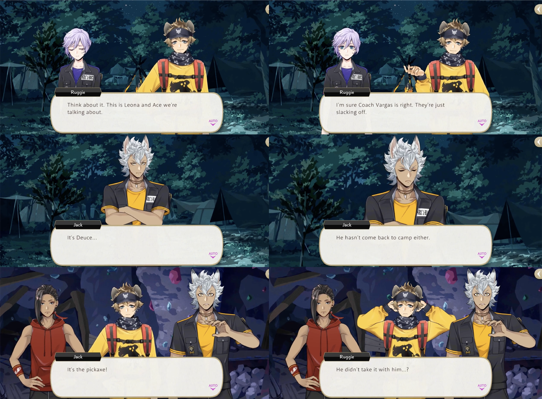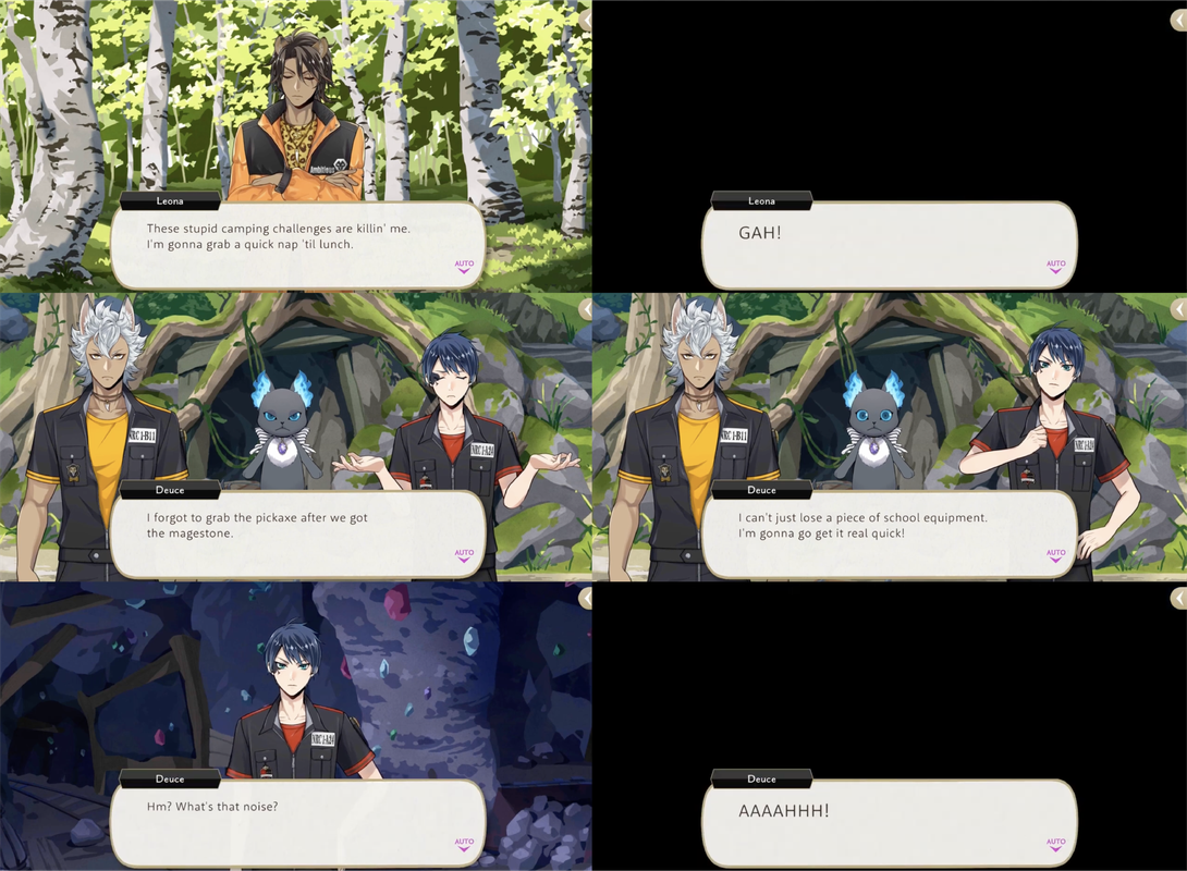 Leona has also gone missing, but Ruggie is not concerned. When Jack reveals that Deuce, too, is missing, the group goes to the mine to find him. They find the pickaxe but there is no Deuce, and decide to go back to Vargas.