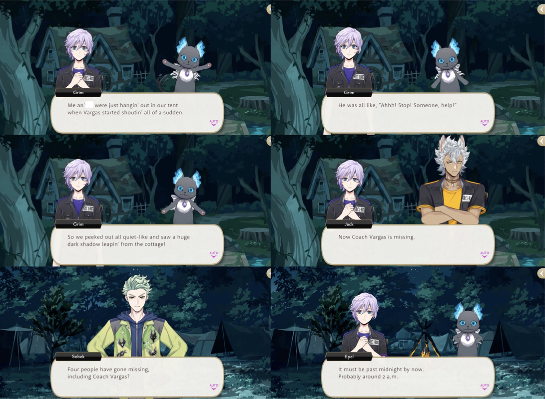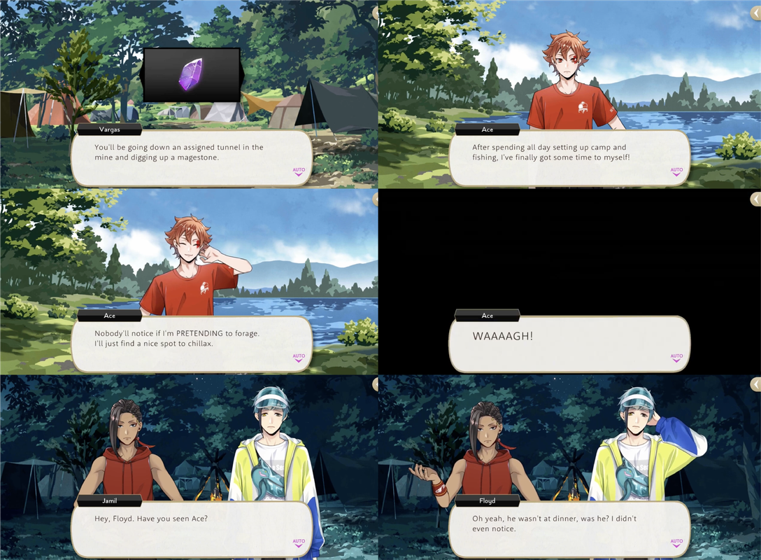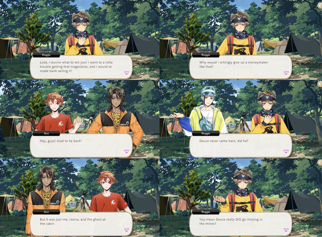 Ace and Leona return to camp but Deuce does not, with Ace saying that Deuce was never in the cabin with himself and Leona.