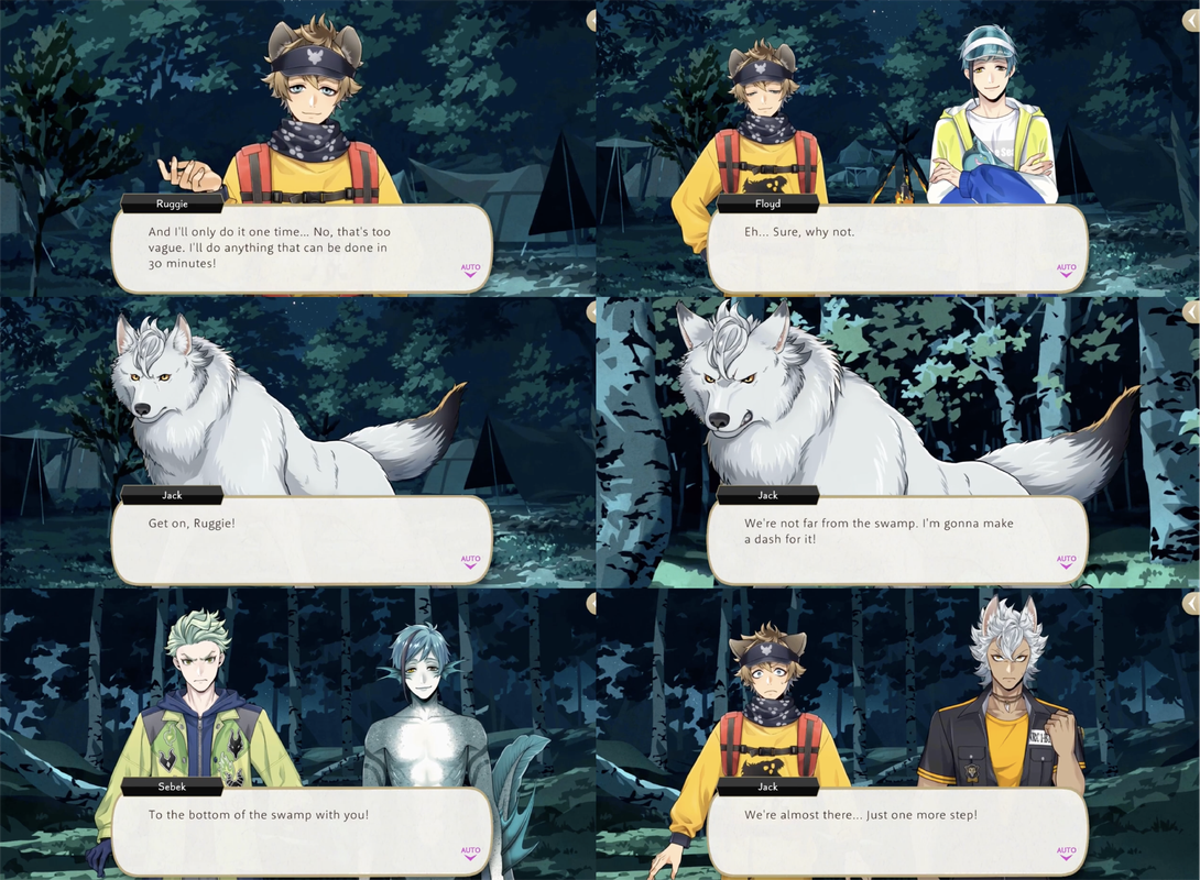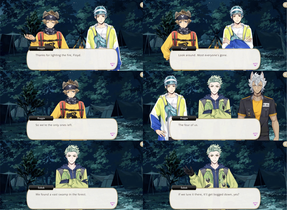 After helping set up camp and fishing Ace is assigned to foraging, but instead decides to take a break. He does not return to the camp that night, but his club members of Jamil and Floyd are not concerned.