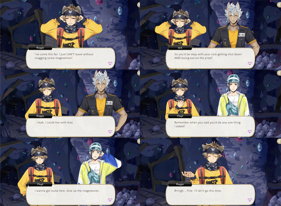 Afterwards Ruggie refuses to leave the mine, preferring to let his club get disbanded if it will mean being able to dig out magestones to sell. Floyd calls in the 30-minute favor that Ruggie promised him, forcing him to leave.