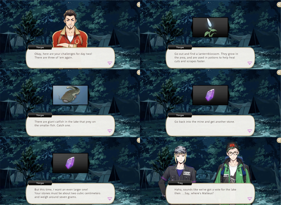 On the second day the students are assigned to finding a lanternblossom, catching a catfish, and digging out a larger magestone from the mine.