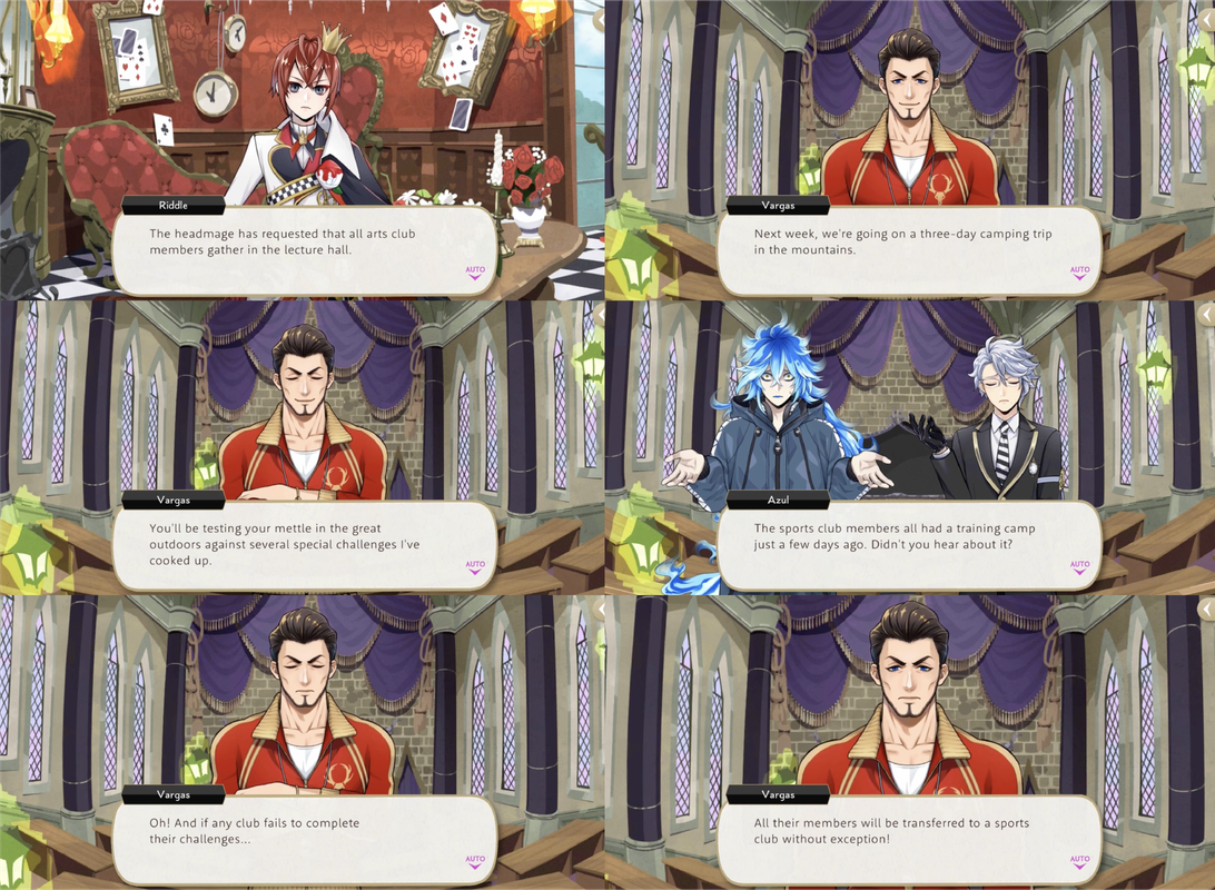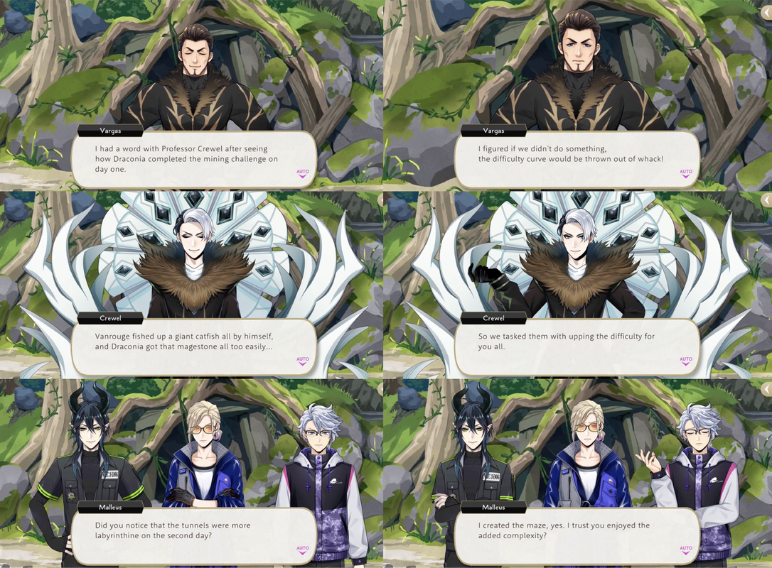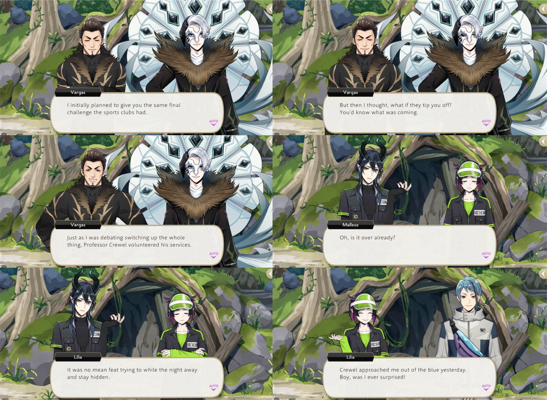 Vargas explains that he changed up the final challenge for the arts clubs for just in case anyone had been warned by the members of the athletic clubs of what was to come. Malleus and Lilia then reveal themselves, explaining that they had been approached by Crewel to help increase the difficulty, with Malleus creating a maze within the mine and and Lilia felling a tree to block a mountain path.