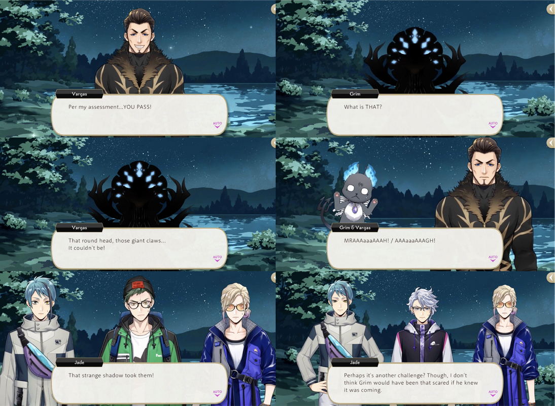 Vargas delcares that the group has passed the final challenge, only to be suddenly takes away by a different shadowy creature, with Grim: the same shadow that Vil saw in the mine the day before.