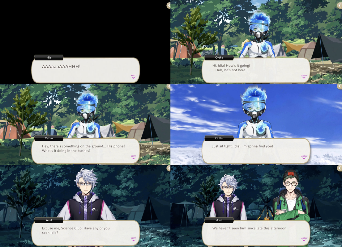 Idia gives Vargas his “extra” smartphone, waits until the camp is empty and then takes out another smartphone to watch videos. Realizing that Idia has disappeared, Ortho leaves the camp to hunt him down.