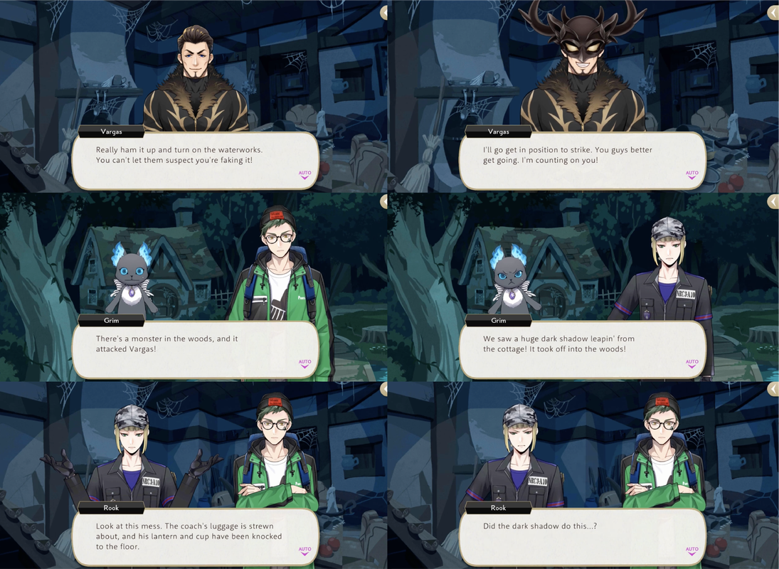 In Vargas’ cottage he assigns Grim and the prefect the role of playing up to the students that he was attacked by a monster. Azul, however, immediately guesses that this is a ruse on Vargas’ part, with Jade and Trey making the connection that this is likely another challenge.
