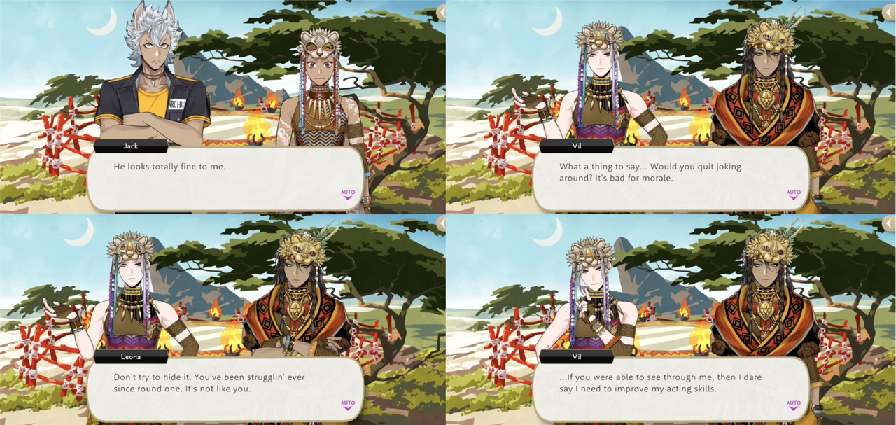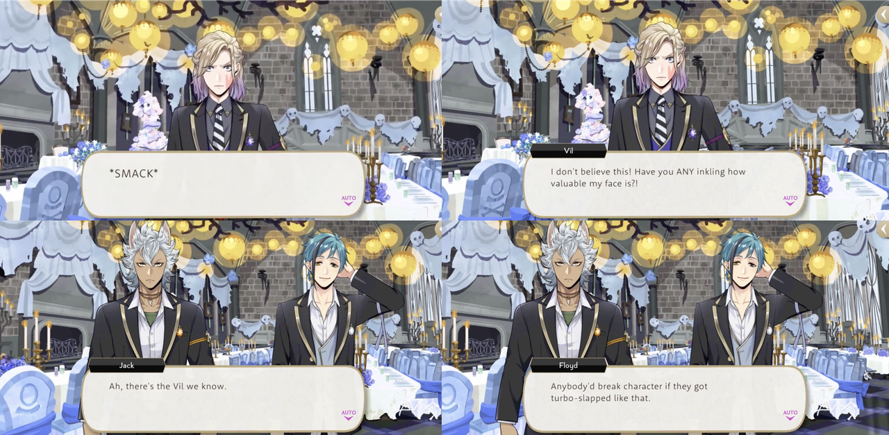 Leona is the only one who notices that Vil was hiding his injury and Vil admits it is true, saying, “…If you were able to see through me, then I dare say I need to improve my acting skills.”