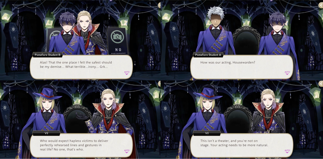 When Azul is accurately suspicious of Vil’s bluff during Beanfest Vil responds, “My acting, convincing as it is, didn’t work on him.”