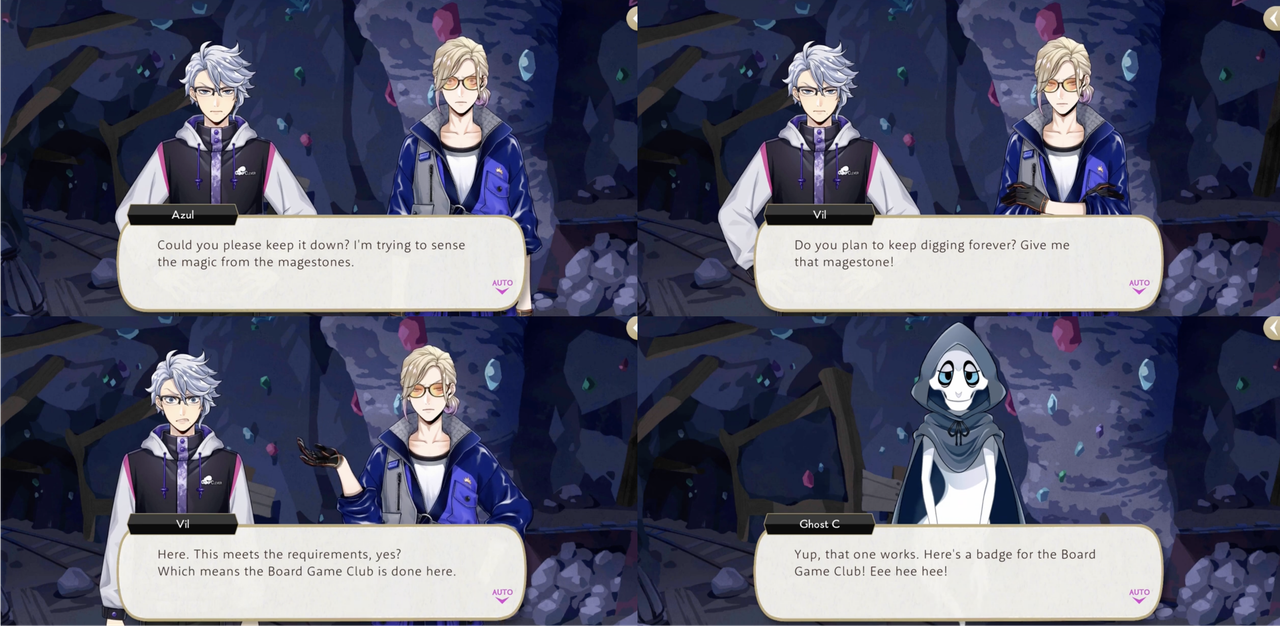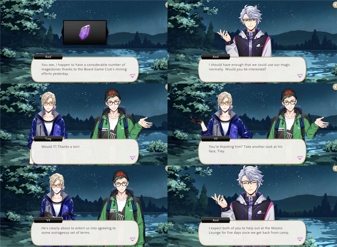 Vil concedes as long as Azul’s club does not interfere with their work, but it is then Vil who interferes Azul’s digging up of magestones, submitting one of Azul’s stones on Azul’s behalf and forcibly ending the task for the Boardgame Club on Azul’s behalf.