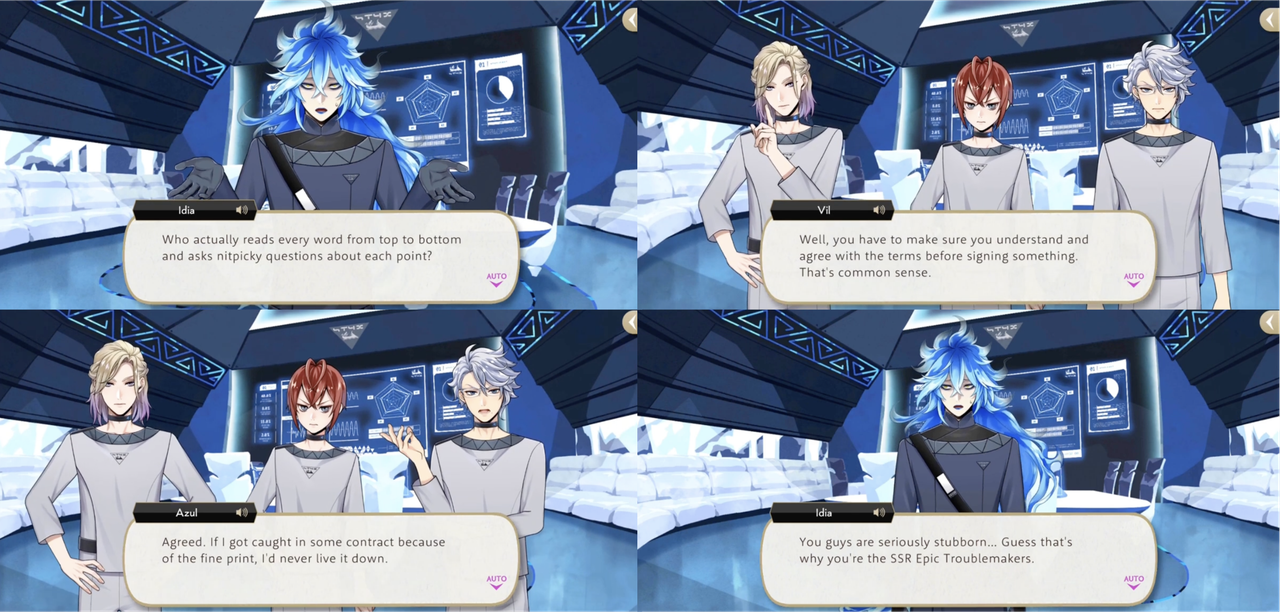Azul reminds them of their promises at the end of the event and Vil responds, “Do you think I would renege on a contract? Relax. I always honor my work commitments.”