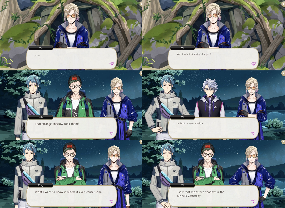 Azul is not pleased by Vil interfering due to having seen a shadow that no one else noticed, but Vil is then later able to guide Azul, Jade and Trey to the shadow’s location after it attacks them due to having seen it in the mines the day before.