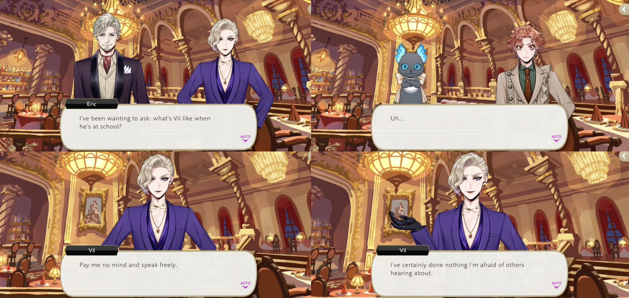 When his father asks Azul, Ace and Jamil what Vil is like at school Vil encourages them to speak freely, saying, “I’ve certainly done nothing I’m afraid of others hearing about.”