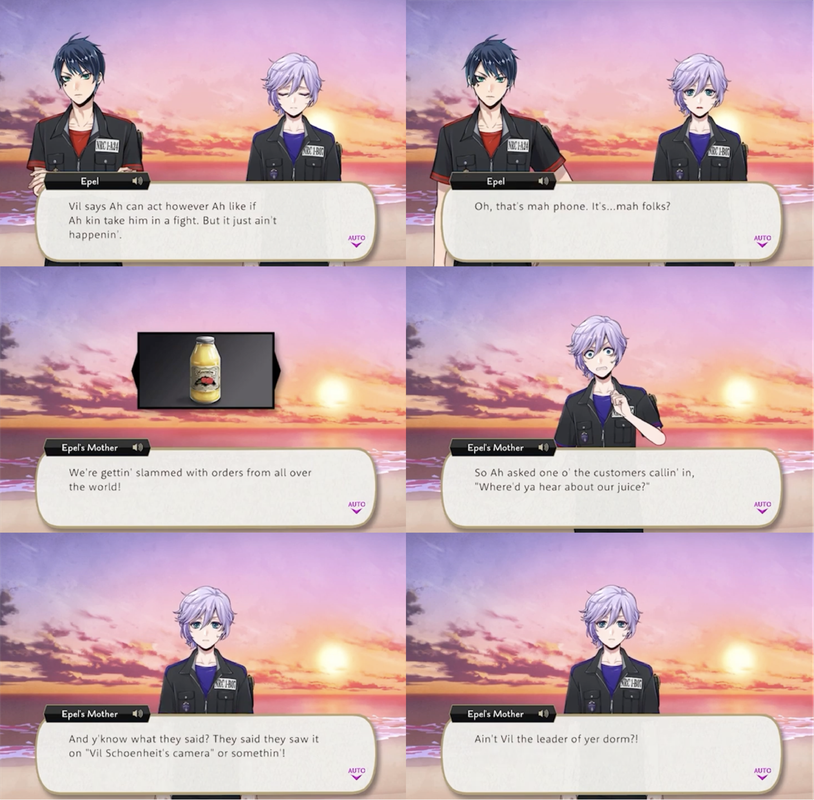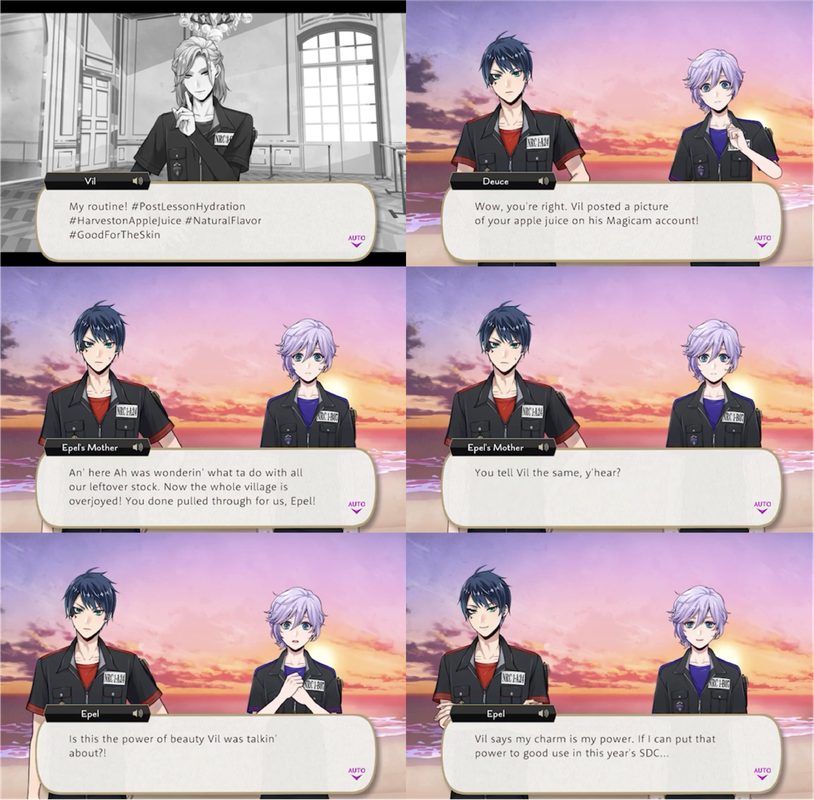 As Epel vents his frustrations to Deuce in Book 5 he receives a phone call from his mother, who reveals that Vil has promoted the apple juice produced by their village on his Magicam, saving them from a financially unstable situation.