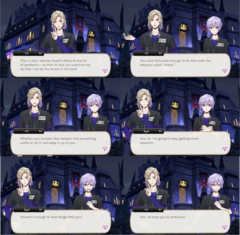 During Halloween we see Epel try to protect Vil from Magicam monsters who would have uploaded his picture without his consent, which earns him Vil’s gratitude.