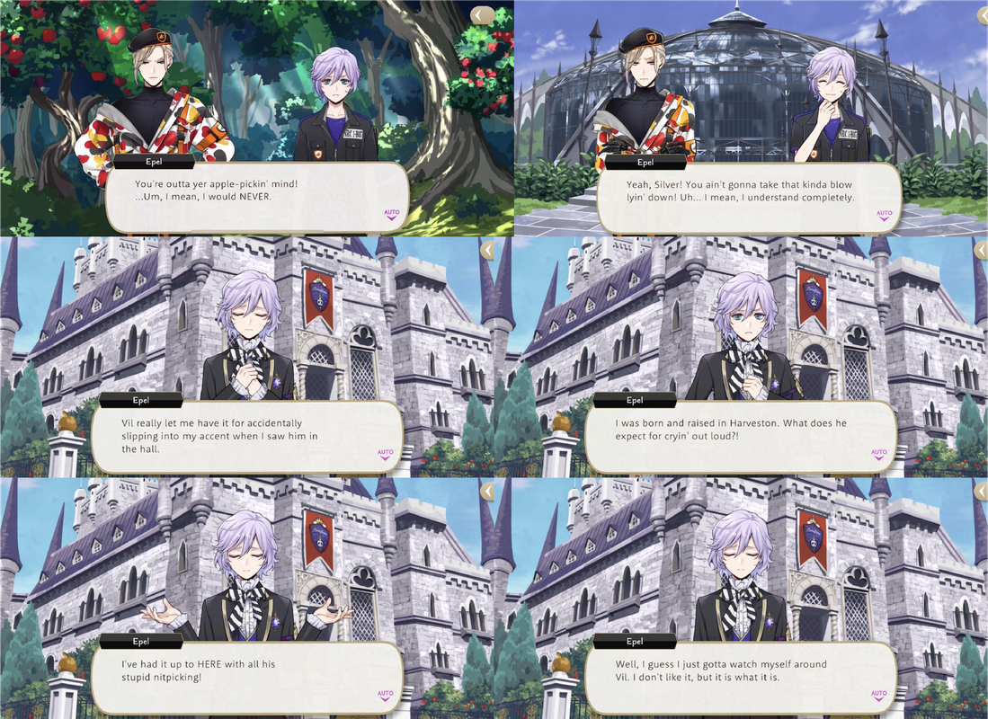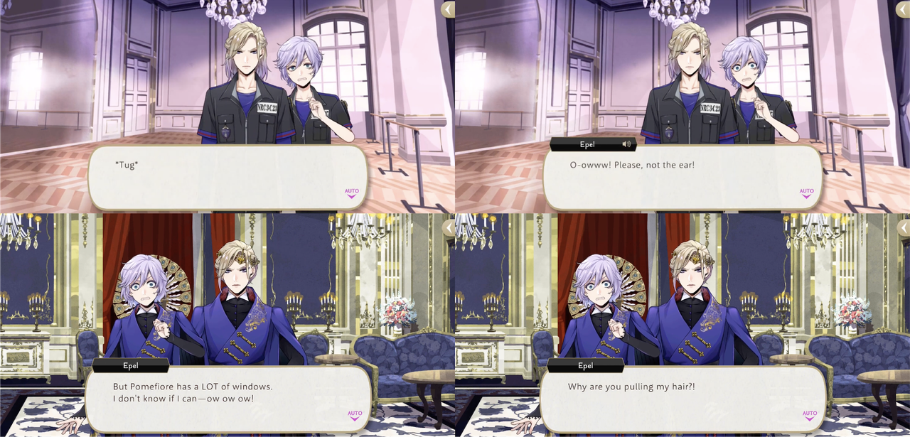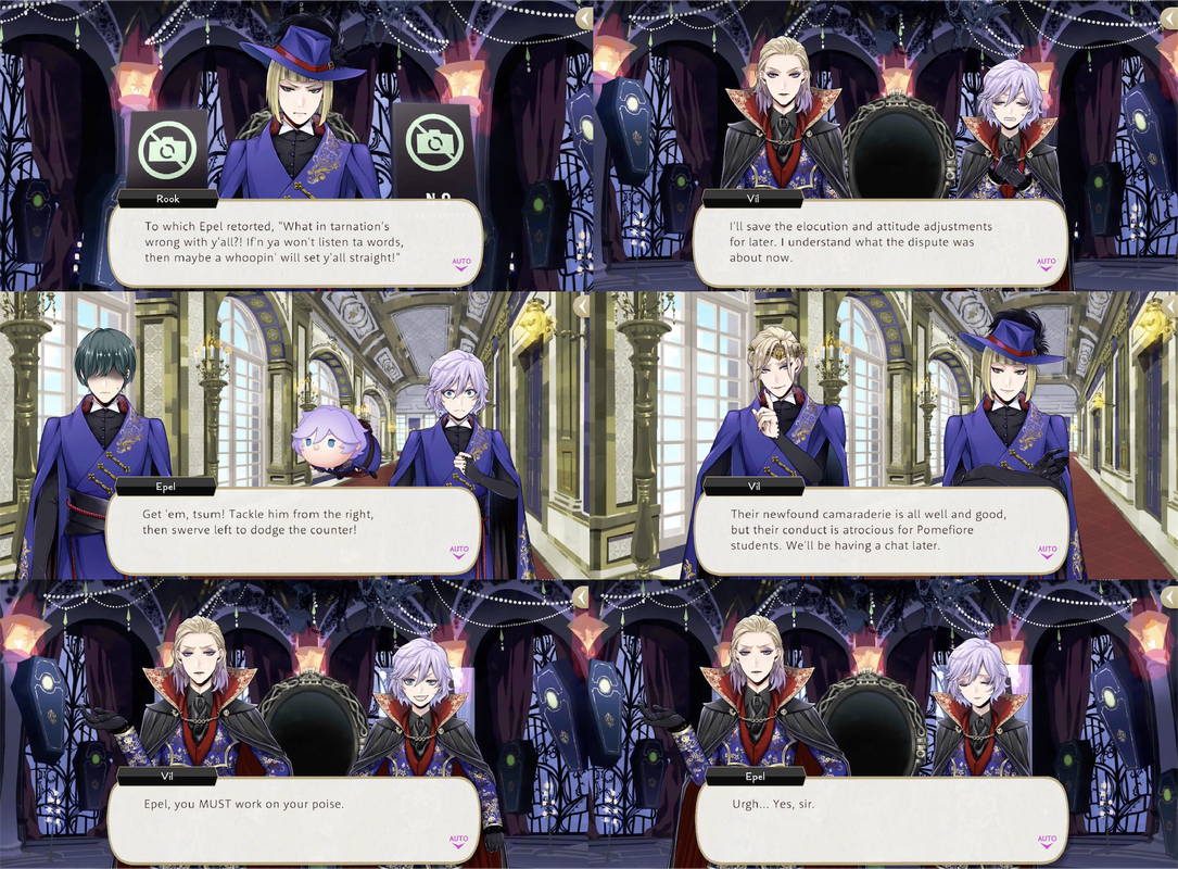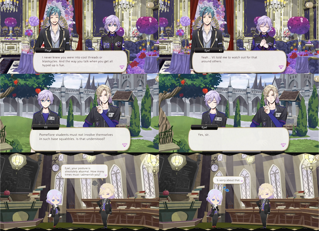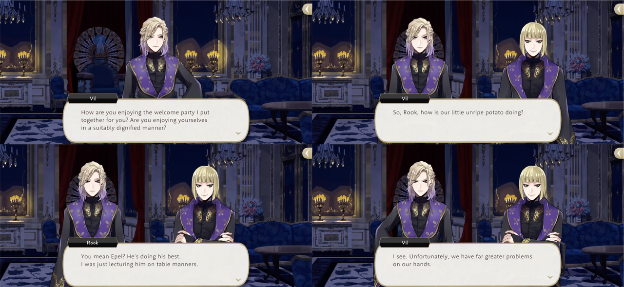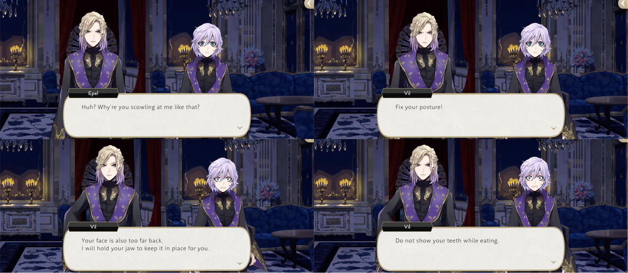 We see Vil correcting Epel’s posture, informal speech patterns and table manners all on his first day of school, and Epel has said that Vil will “really let (him) have it” when he slips into his natural dialect. (More on Vil’s issues with Epel’s impolite speech patterns here ->)