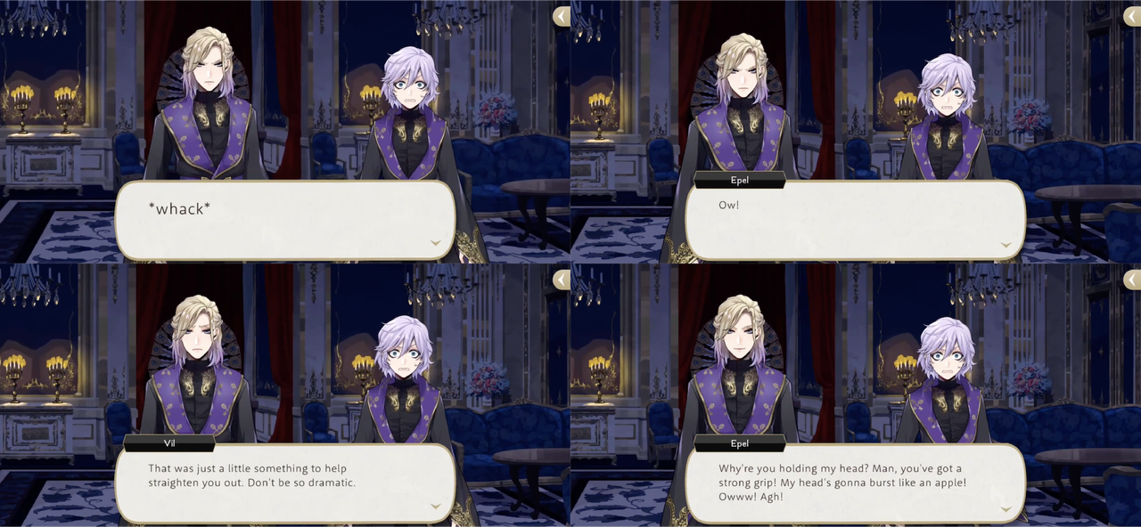 Vil seems to incorporate corporal punishment into his training of Epel, grabbing him by his ear, his hair hitting him (on the back?) and gripping onto his head.