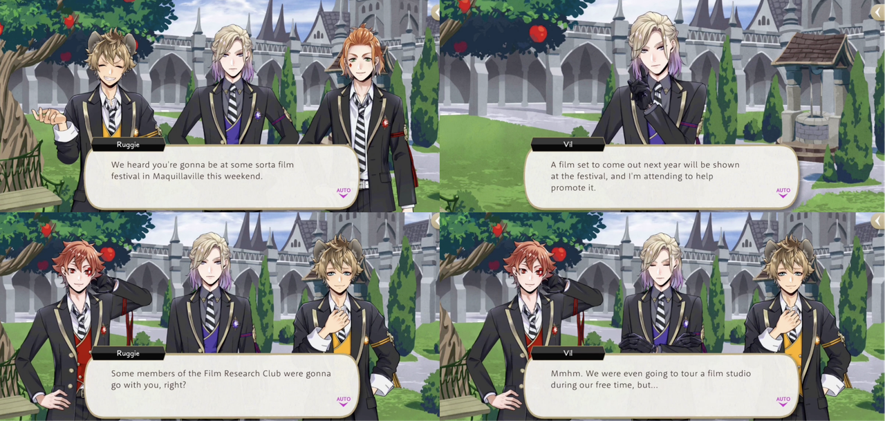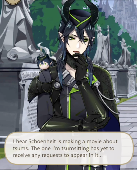 Malleus mentions having heard that Vil is making a movie about tsums (“The one I’m tsumsitting has yet to receive any requests to appear in it…”).