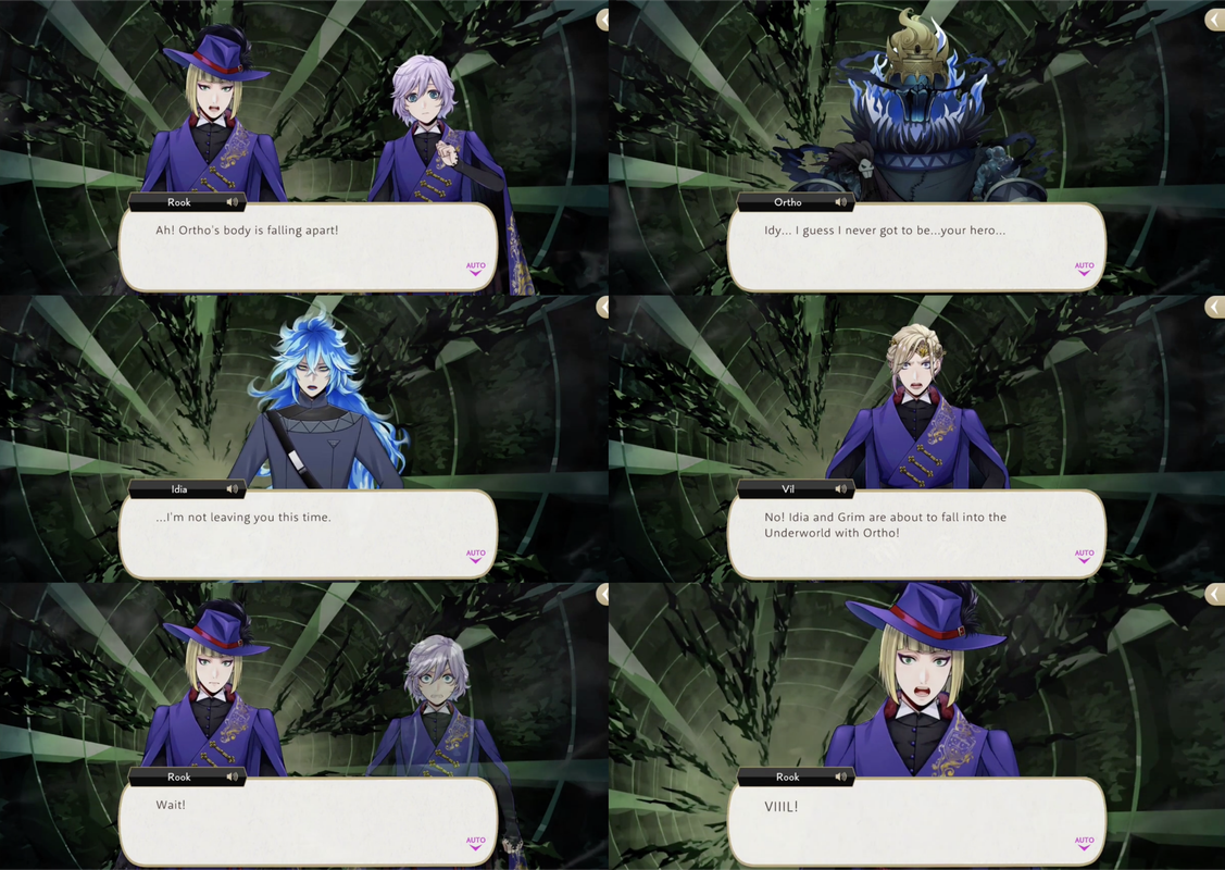Idia tries to follow Ortho into the Underworld but Vil follows after him, saving both his and Grim’s lives but severely aging him up.