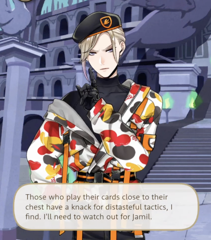In a Beanfest voice line Vil says, “Those who play their cards close to their chest have a knack for distasteful tactics, I find. I’ll need to watch out for Jamil.”