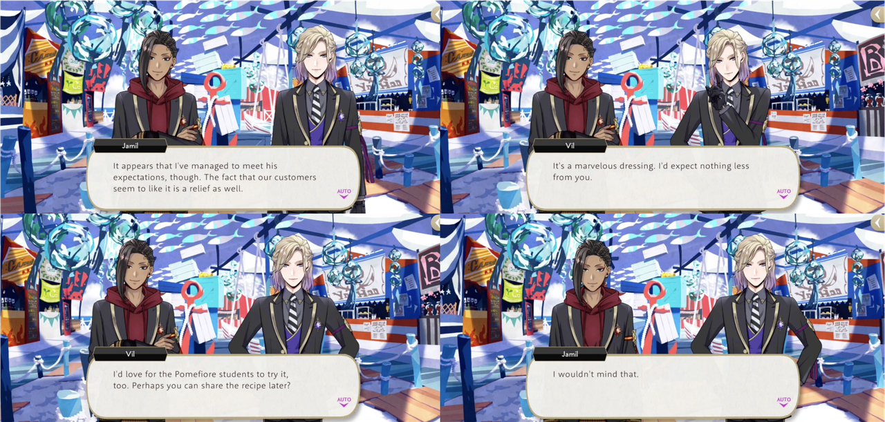 Vil says it is marvelous and he would expect nothing less from Jamil, asking for the recipe to share with Pomefiore’s students, and Jamil agrees.