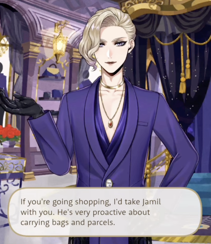 Vil describes Jamil as “boring and always worrying needlessly behind the scenes,” but recommends that the prefect take him with them if they go shopping, as Jamil is “very proactive about carrying bags and parcels.”